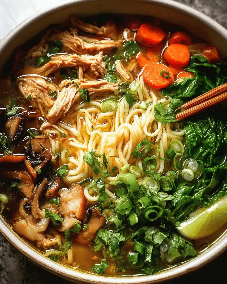 Making Asian Chicken Noodle Soup is a delightful way to warm your soul and nourish your body. This recipe is perfect for using up leftover chicken or turkey while packing in fresh, healthy ingredients. Let’s break down the steps to create this comforting bowl of goodness.