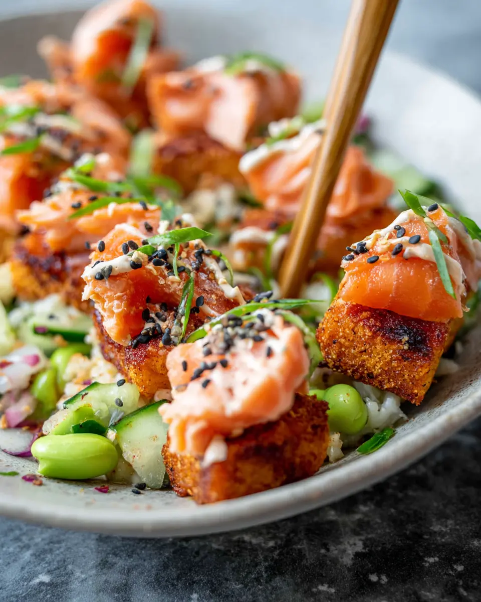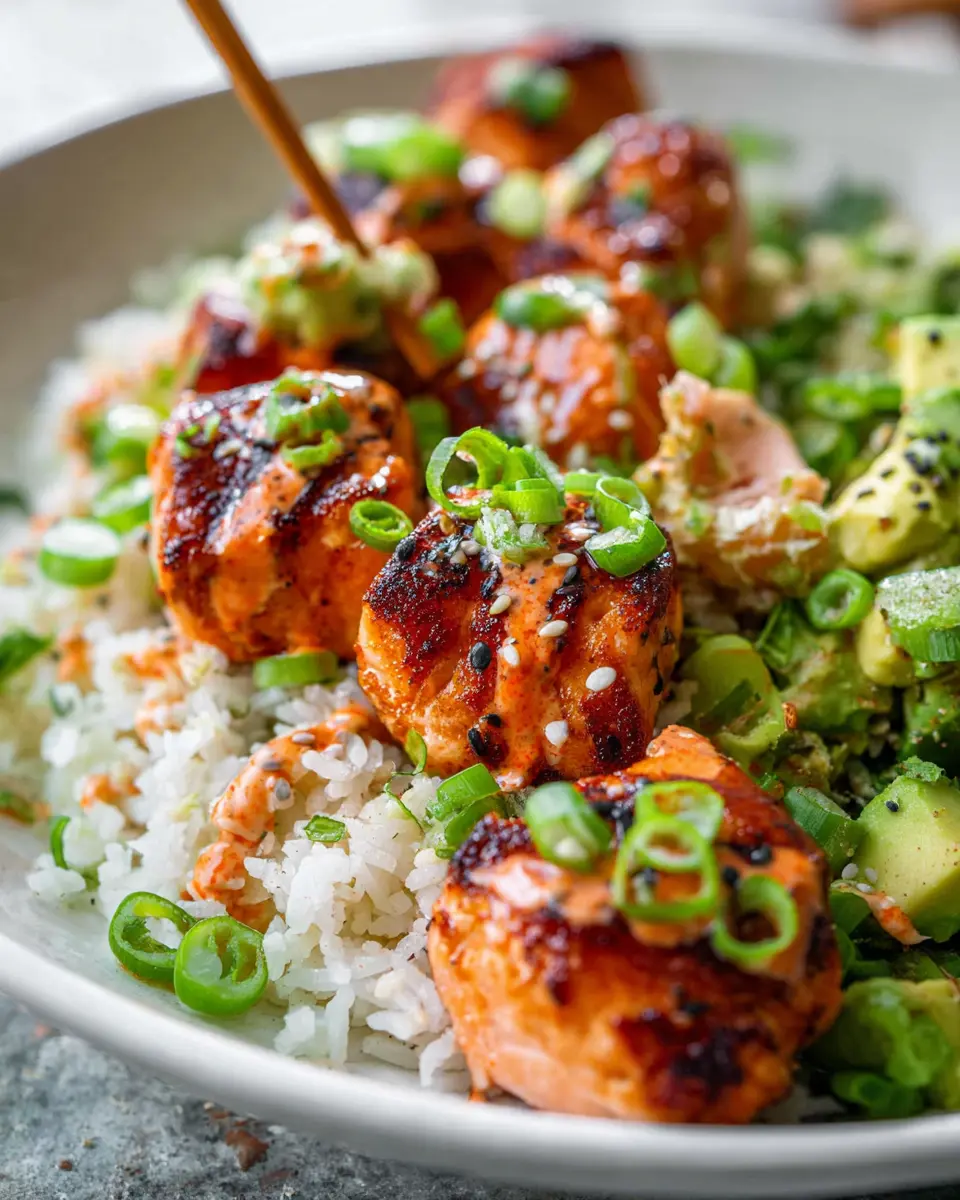 These extras not only add texture but also make your Bang Bang Salmon Bites a feast for the eyes and the palate! Enjoy your cooking adventure!