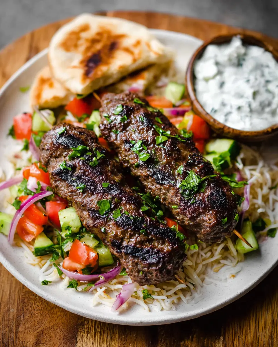 Mediterranean Plate: Pair your kebabs with Shirazi salad and Lebanese rice pilaf for a flavorful, well-rounded meal. The freshness of the salad harmonizes beautifully with the rich spices in the kebabs.