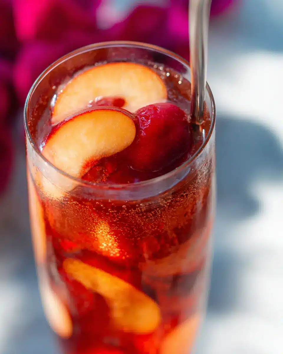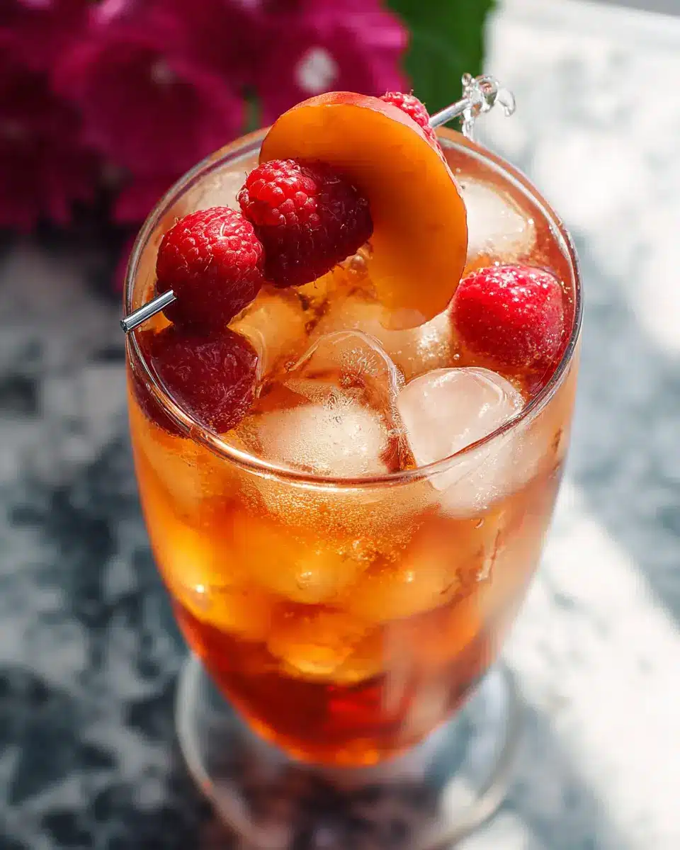 Want to elevate your Bellini Peach Raspberry Iced Tea? Adding fresh mint is an excellent way to introduce a burst of flavor. Simply muddle a few mint leaves at the bottom of your glass before pouring in the iced tea mixture. The mint not only enhances the drink’s aromatic qualities but also adds a cooling effect that’s perfect for hot summer days. For extra flair, garnish your drink with a sprig of mint!