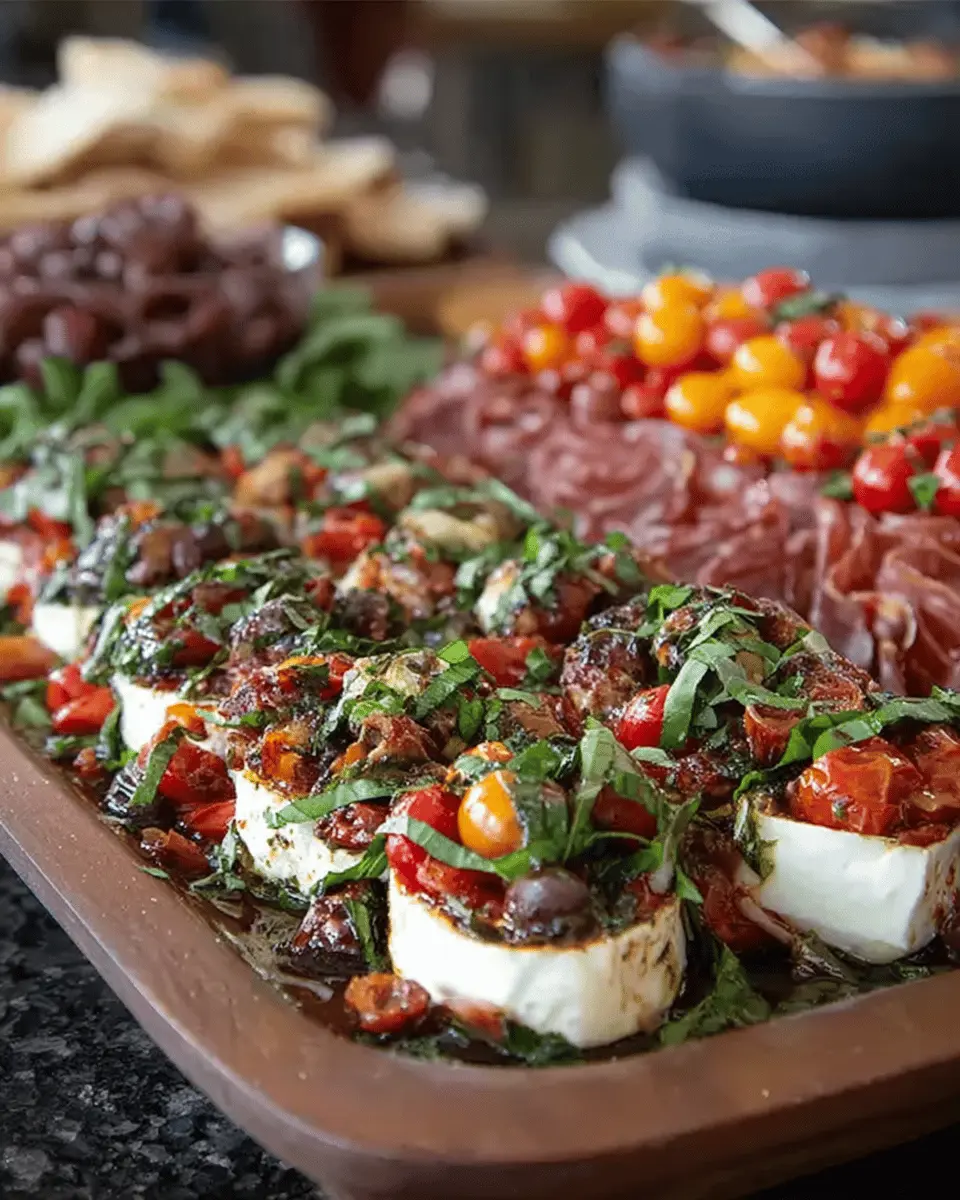The combination of creamy goat cheese and the earthy, aromatic herbs creates a delightful balance of flavors. According to the Mediterranean Diet Foundation, the richness of olive oil supports heart health while sun-dried tomatoes provide essential vitamins, making this appetizer not just tasty but also nutritious.