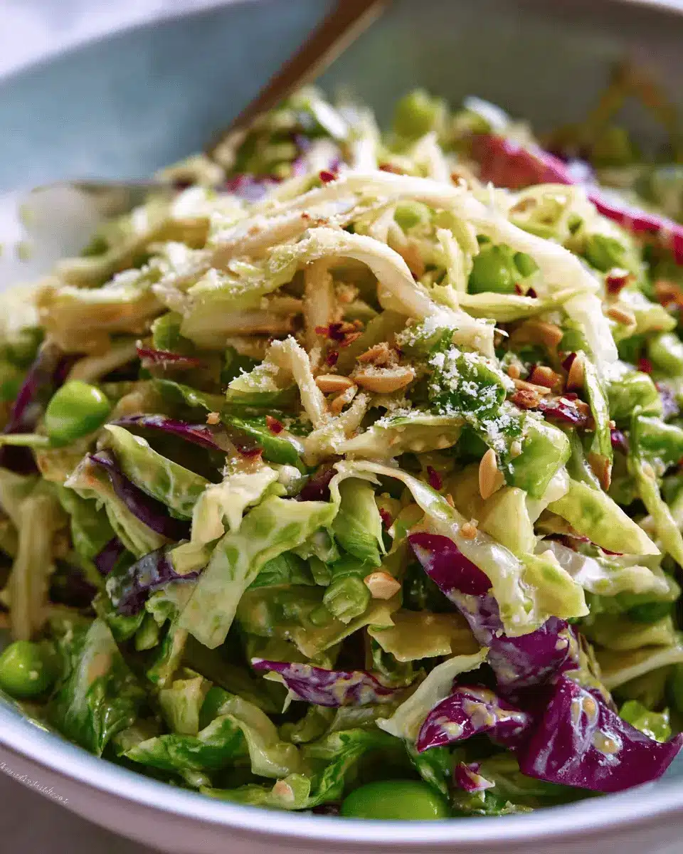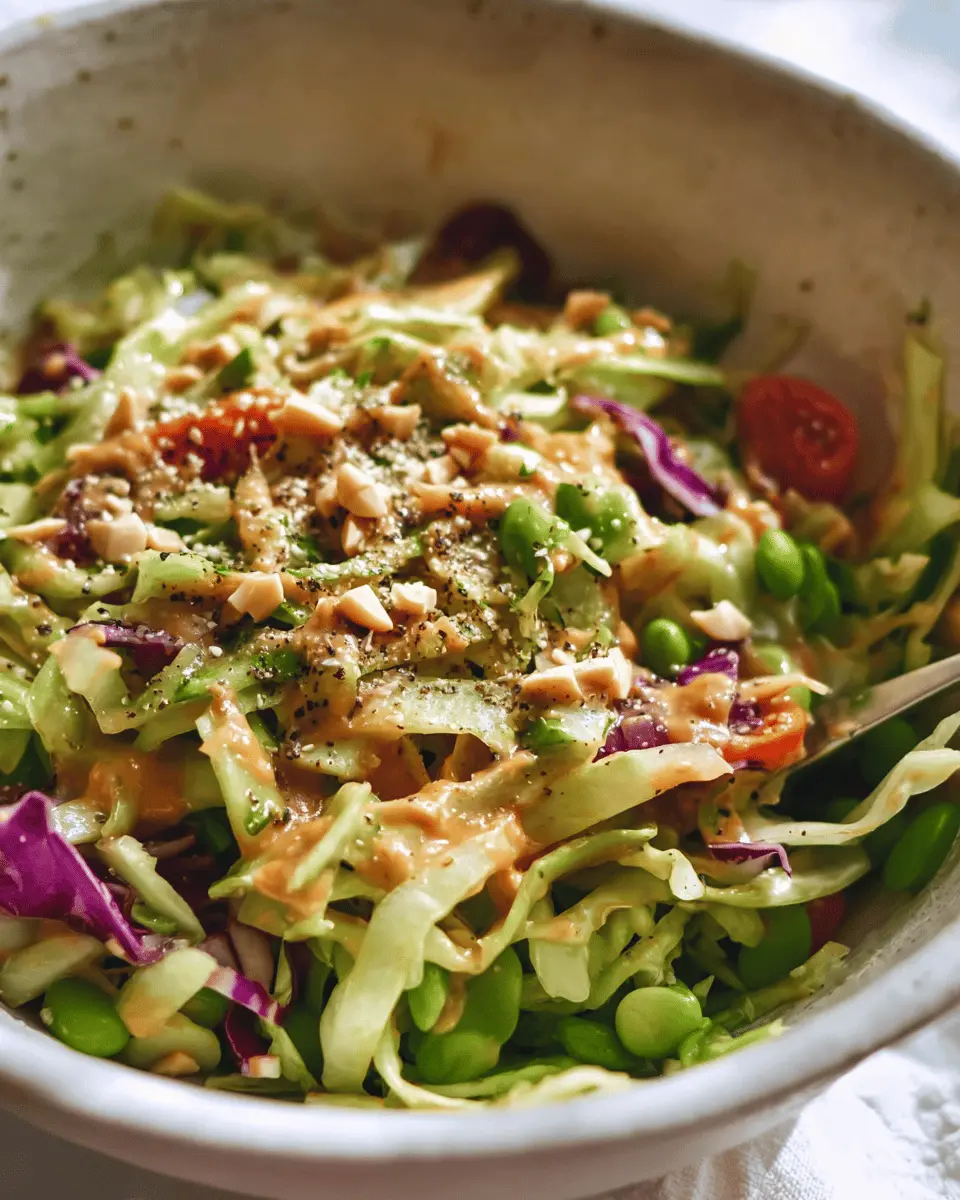 Nutritional Benefits: Cabbage is low in calories yet high in vitamins C and K, while the healthy fats from peanut dressing give you lasting energy. Adding ingredients like edamame and pumpkin seeds boosts the protein content, making this salad not just a side, but a fulfilling main dish as well.