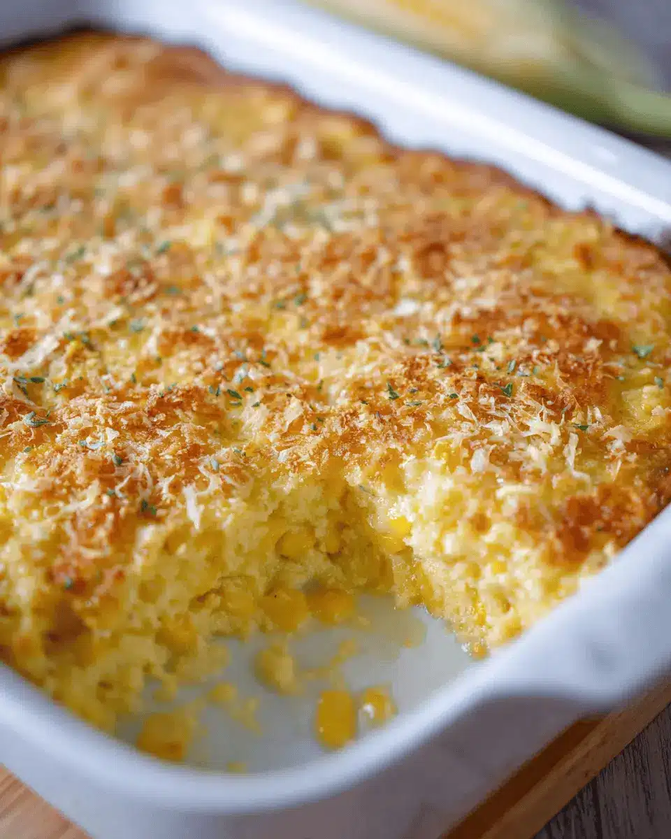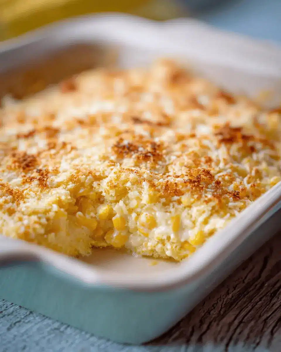 In summary, this Cheesy Corn Casserole is a delightful side dish that adds comfort to any meal. Its creamy texture and savory flavors make it a crowd-pleaser, whether at a family gathering or a casual dinner. Try it out, and share your experiences for others to enjoy!
