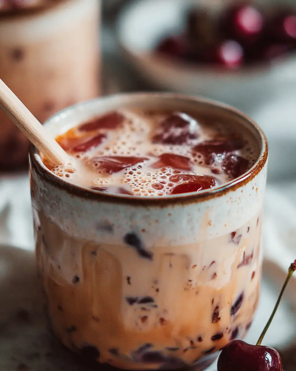Creating your Cherry Earl Grey Milk Tea is wonderfully swift! You’ll need about 10 minutes to gather ingredients and get everything prepped. This includes pitting and halving the cherries, as well as boiling your water.