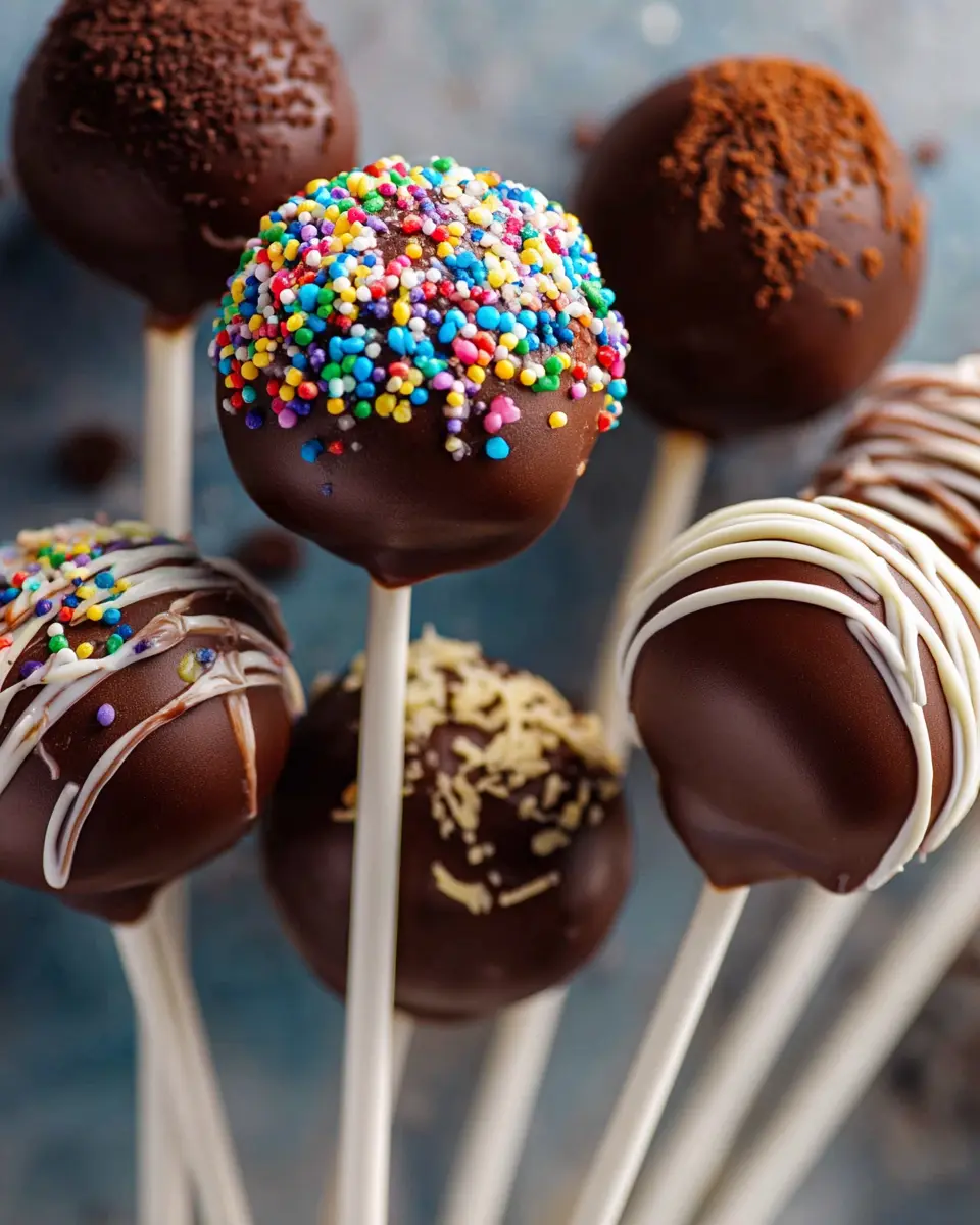 Get creative with how you decorate your chocolate cake pops! Instead of traditional sprinkles, try crushed nuts, coconut flakes, or edible glitter for an eye-catching finish. Dip the tops in white chocolate and use colored fondant shapes or themed candies to match your occasion. For a textured look, drizzle melted chocolate over the tops or even use a piping bag for decorative designs. The possibilities are endless, and it’s a great way to express your style!