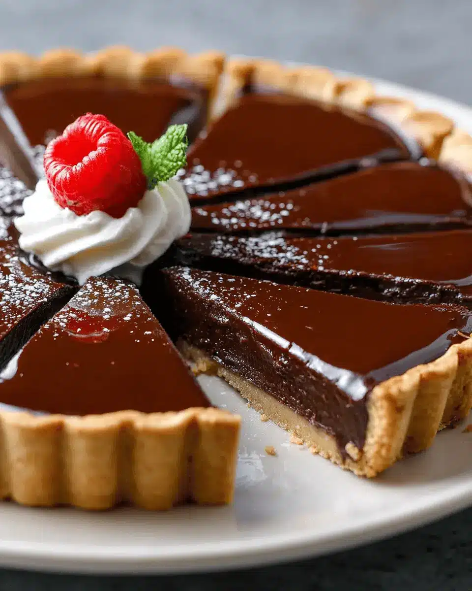 In conclusion, this exquisite chocolate tart is the perfect dessert for any occasion. Its rich flavors and elegant presentation are sure to impress your guests. Plus, the straightforward recipe makes it easy to recreate. Give it a try, and savor every delectable slice! For more dessert inspirations, check out The Spruce Eats and elevate your baking game.