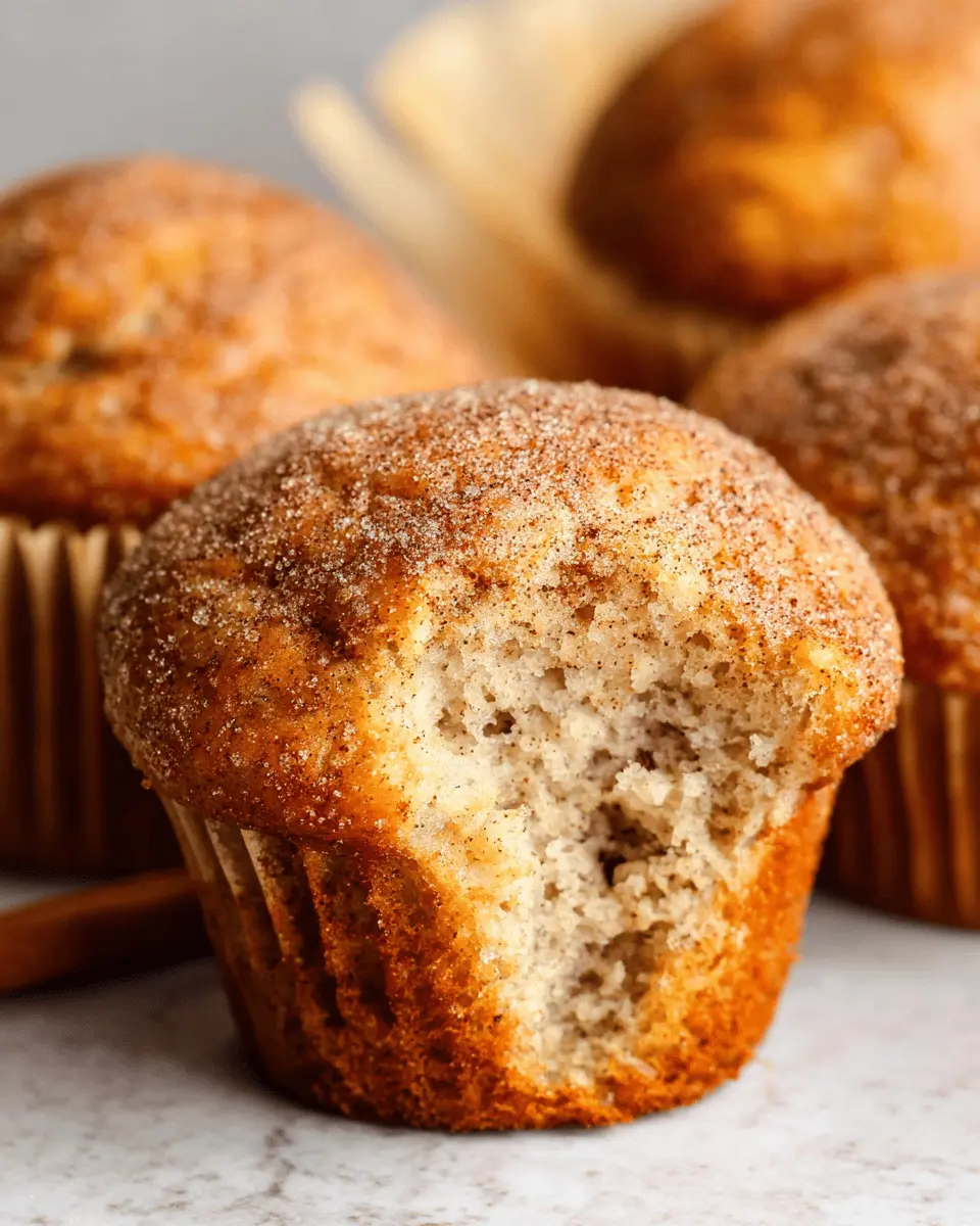 While the muffins are baking, prepare your cinnamon sugar topping by mixing together granulated sugar and ground cinnamon in a small bowl. Once the muffins come out of the oven, let them cool in the pan for a few minutes before transferring them to a cooling rack. For a delicious finish, dip the tops into melted butter and then into your cinnamon sugar mixture. This step is crucial for that extra burst of flavor!