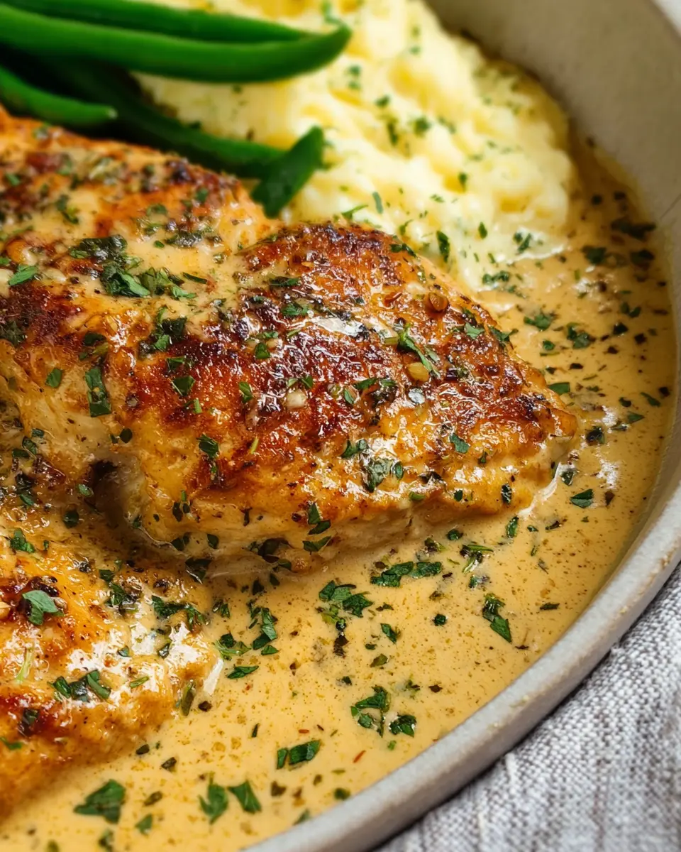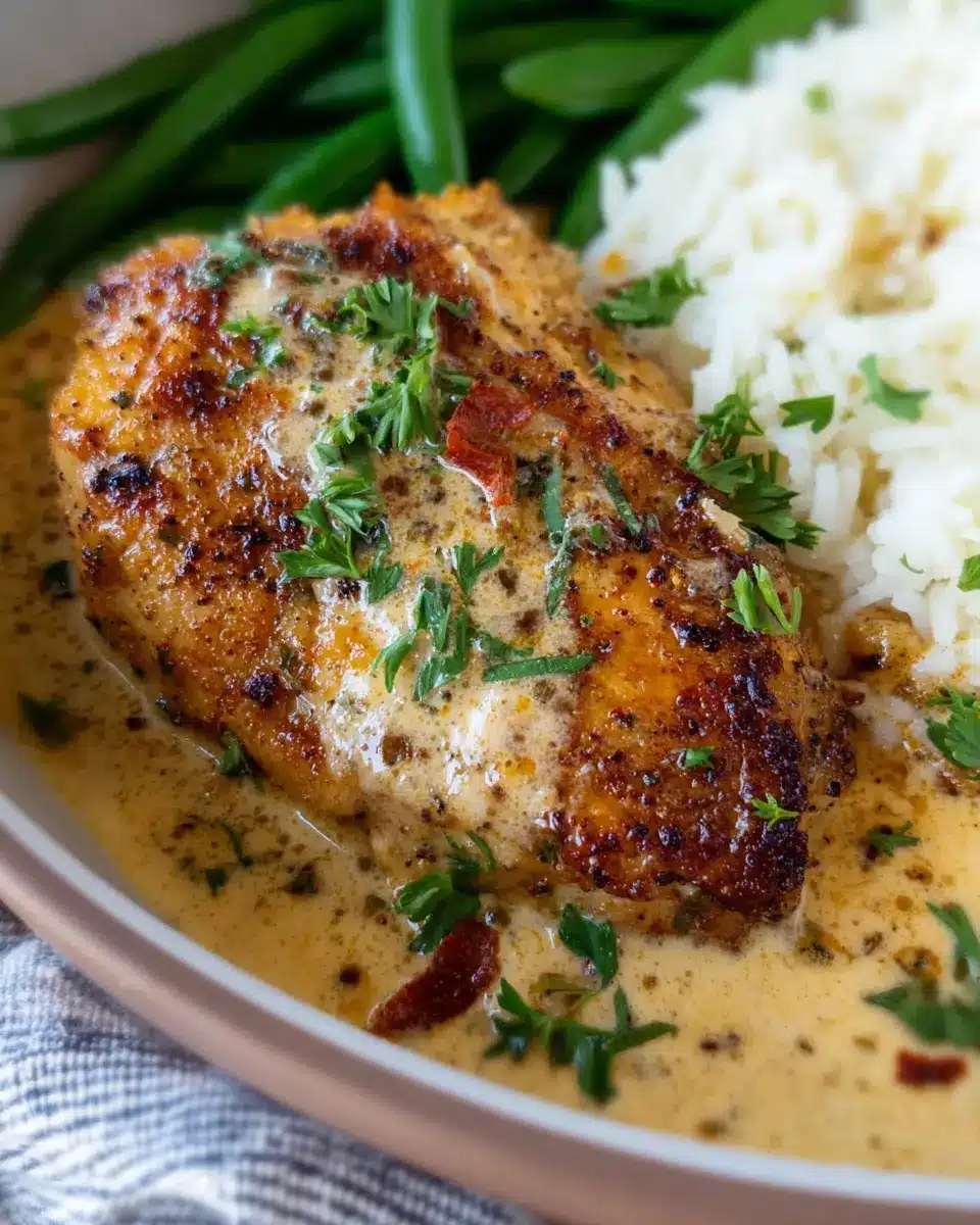 Finally, it’s time to serve your Creamy Garlic Chicken! Pair it with your favorite sides—mashed potatoes, steamed rice, or pasta—and don’t forget some vibrant steamed greens for a pop of color. Sprinkle with freshly chopped flat-leaf parsley and add a wedge of lemon to squeeze on top for an extra zing. Enjoy every bite, knowing you’ve just created a restaurant-quality meal at home!
