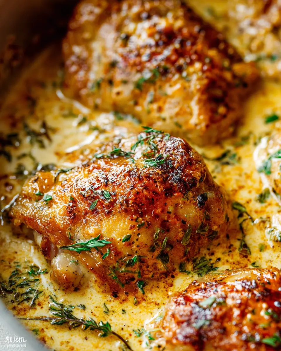 Now it’s time for the magic to happen. Return the chicken thighs to the skillet and gently coat them in that luscious creamy sauce. Place the skillet in the preheated oven at 375°F and bake uncovered for 30-35 minutes. You'll know it's done when the chicken is tender and fully cooked through.
