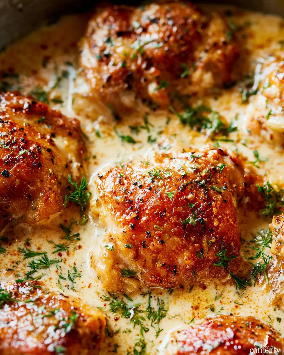 Now it’s time for the magic to happen. Return the chicken thighs to the skillet and gently coat them in that luscious creamy sauce. Place the skillet in the preheated oven at 375°F and bake uncovered for 30-35 minutes. You'll know it's done when the chicken is tender and fully cooked through.
