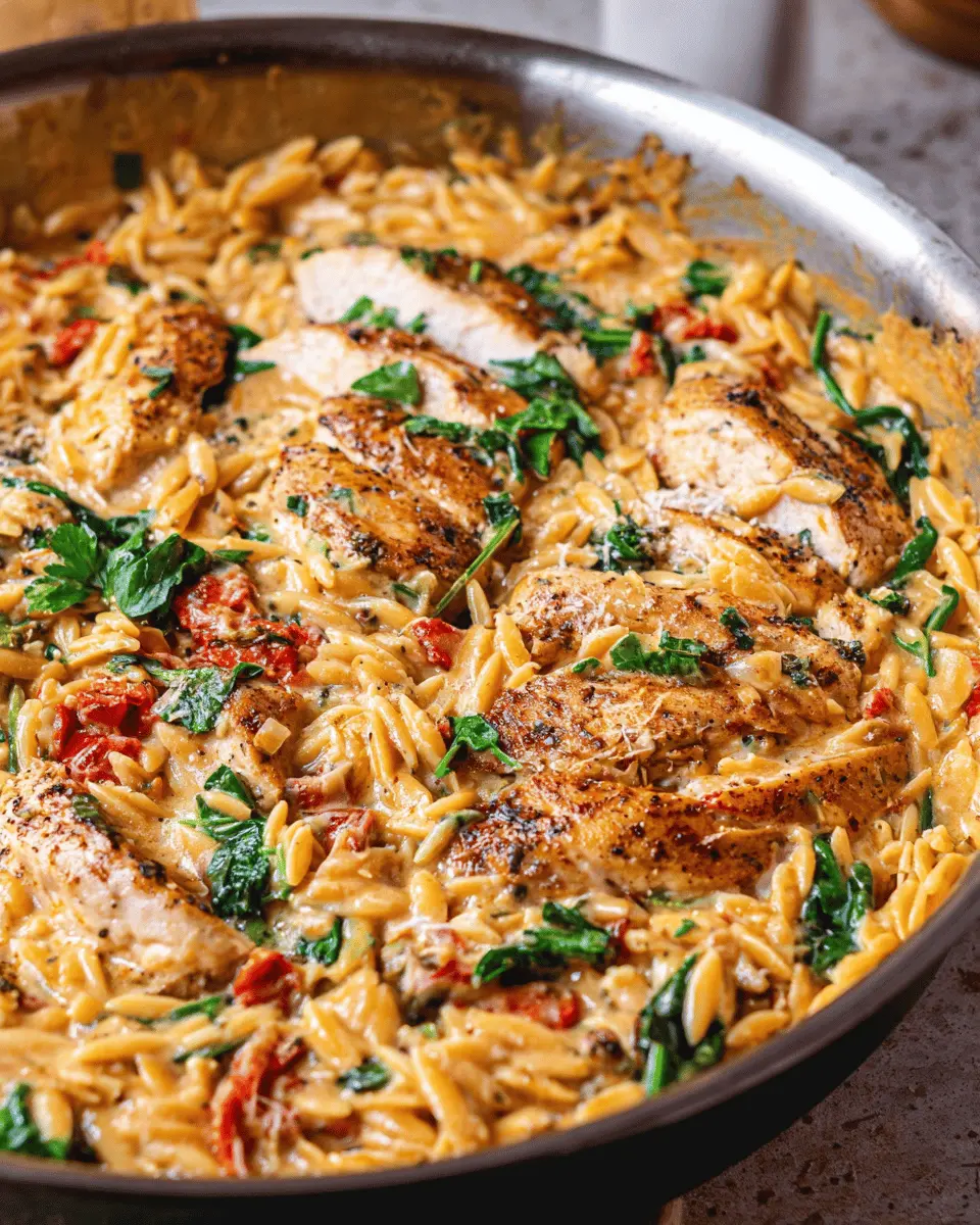 Making Creamy Tuscan Chicken Orzo is a delightful culinary adventure, perfect for those busy weeknights when you want something hearty yet easy. Let’s dive into the mouthwatering steps that make this dish irresistible!