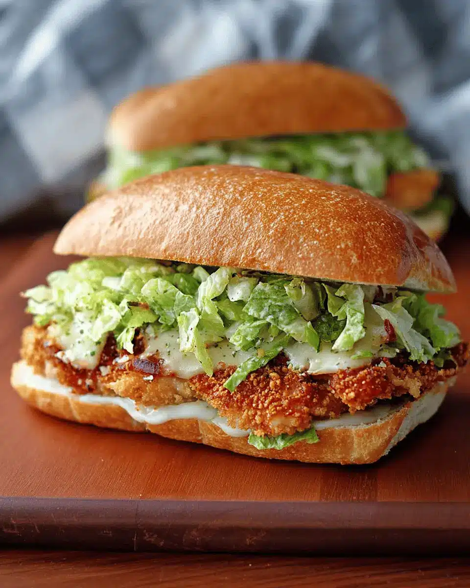 Feel free to get creative with ingredients! If you can’t find panko breadcrumbs, regular breadcrumbs will do, but you might lose some crunch. For a lighter option, replace Caesar dressing with a yogurt-based alternative. You can also swap chicken breast for turkey or plant-based patties for a different flavor profile. Whatever you choose, be sure to enjoy your flavorful Crispy Chicken Caesar Sandwiches!