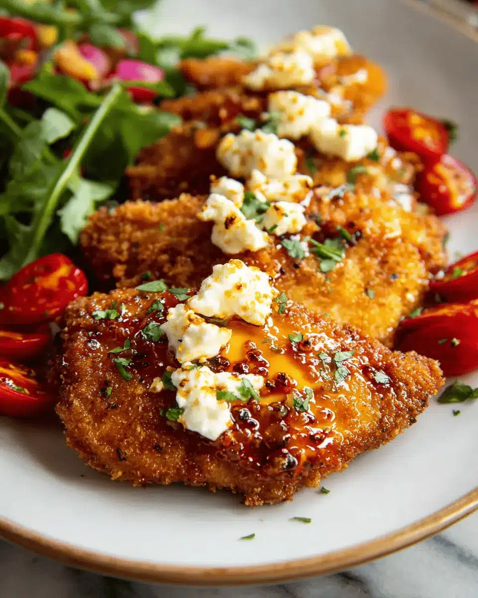 In conclusion, Crispy Hot Honey Feta Chicken is a delightful dish that balances heat and creaminess to perfection. Whether you're hosting a dinner party or simply enjoying a cozy night in, this easy recipe is bound to impress. Don’t forget to pair it with some fresh sides for a complete meal!