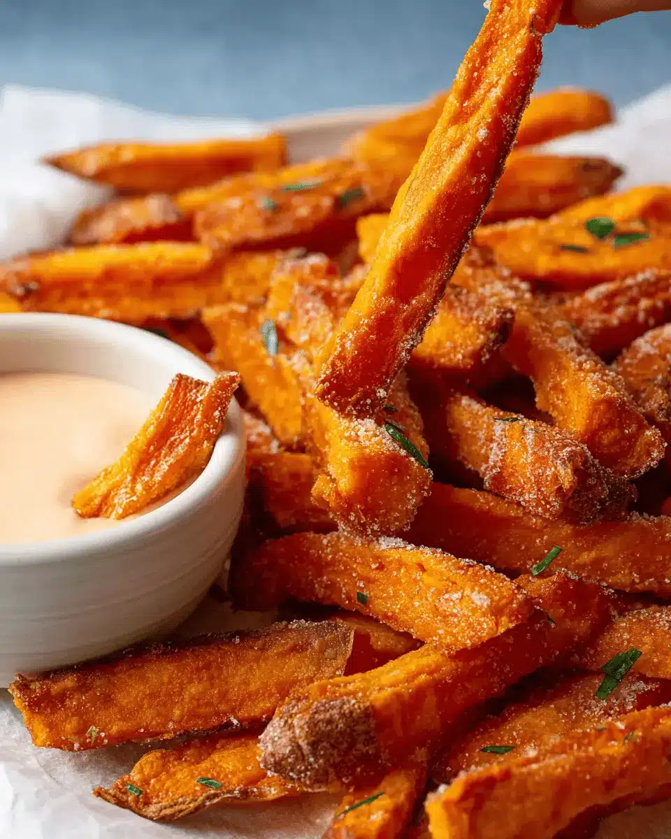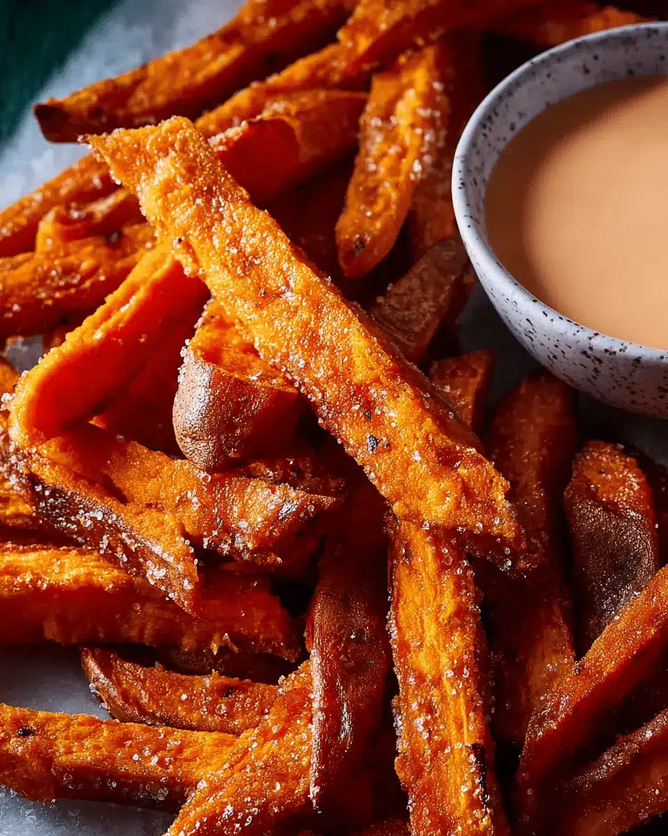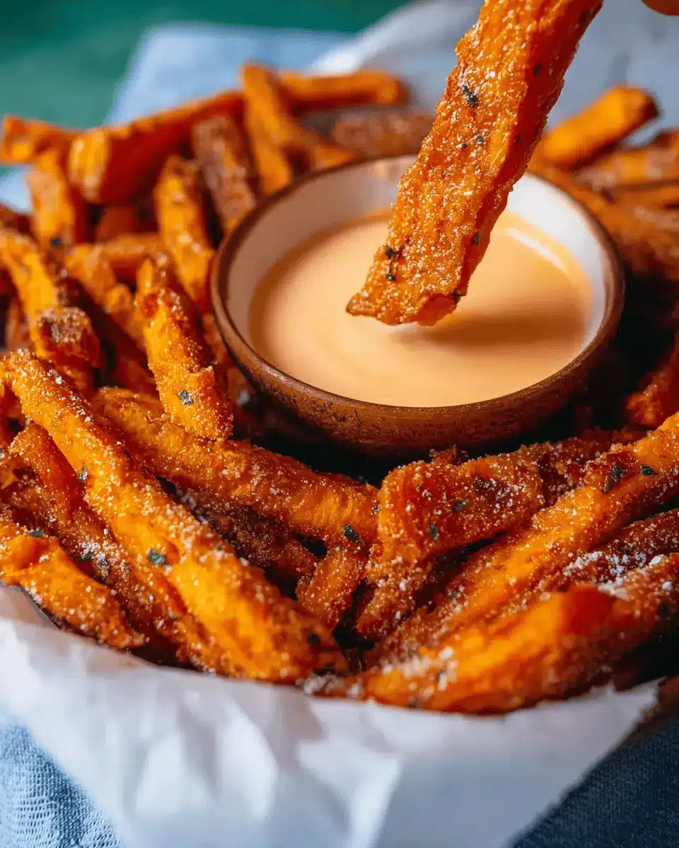 While the fries are baking, why not whip up a quick fry sauce? In a small bowl, combine ½ cup of mayonnaise, 1 tablespoon of ketchup, 1 tablespoon of sriracha, 2 teaspoons of white vinegar, and ½ teaspoon of garlic powder. Mix it up, and you’ll have a delicious dip ready to elevate your crispy oven-baked sweet potato fries.