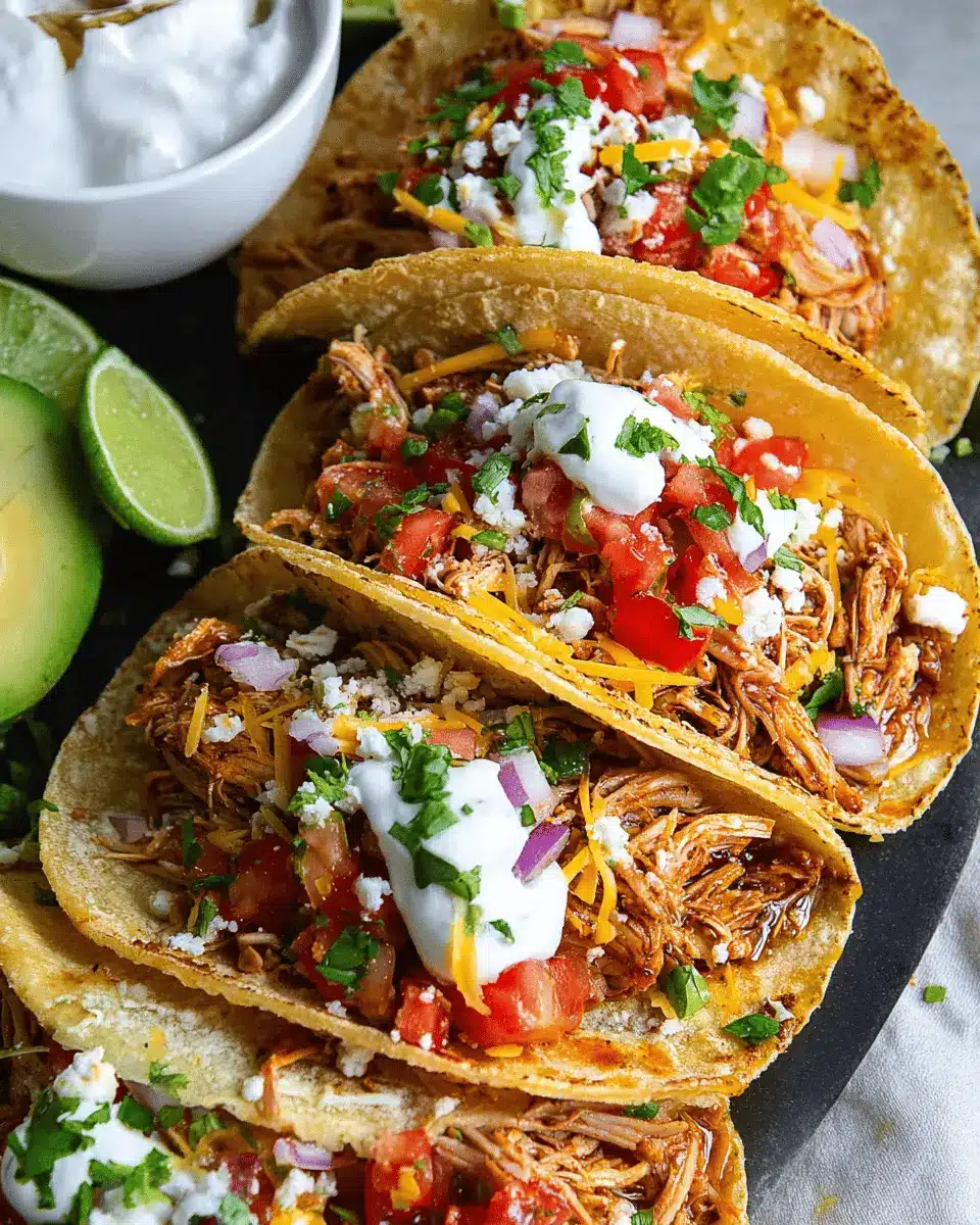 Enjoy these Crock-Pot Chicken Tacos with friends or family, and savor every delicious bite! Don’t forget, if you have leftovers, they store wonderfully for future meals.