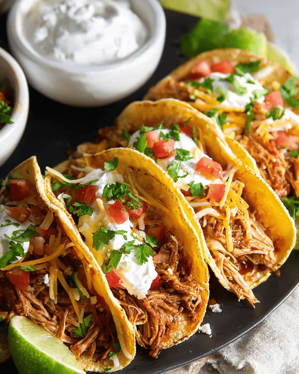 With the chicken ready and tortillas prepped, it’s finally time to assemble your tacos. Top with your favorites—sour cream, fresh tomatoes, shredded cheese, or even hot sauce for an extra kick.