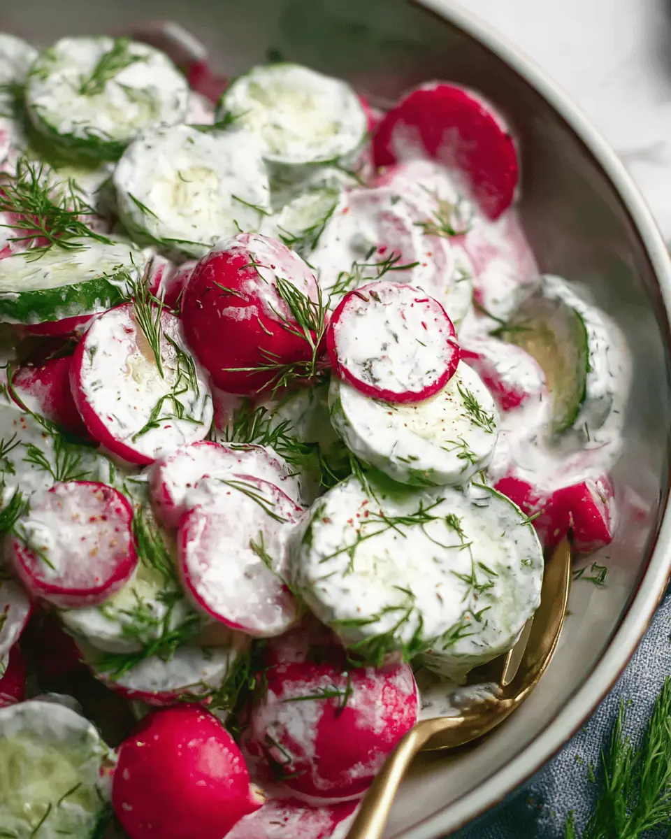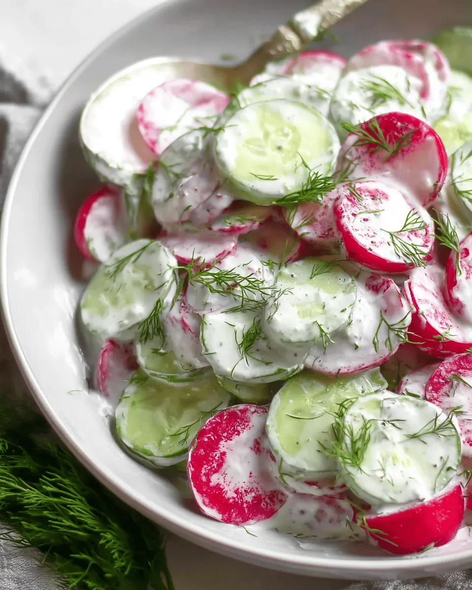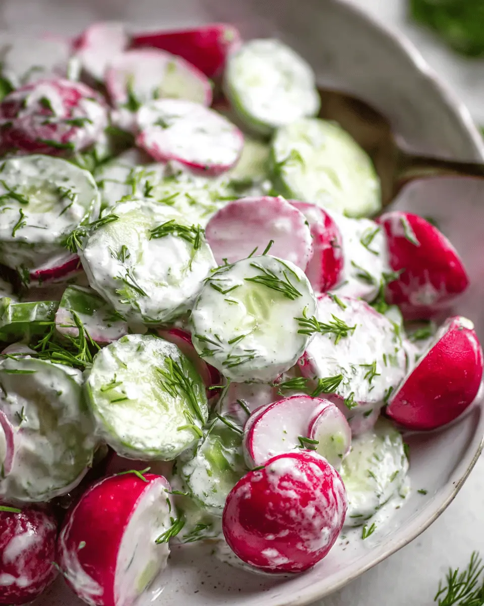 Cucumber Radish Salad w/ Yogurt Dill Dressing