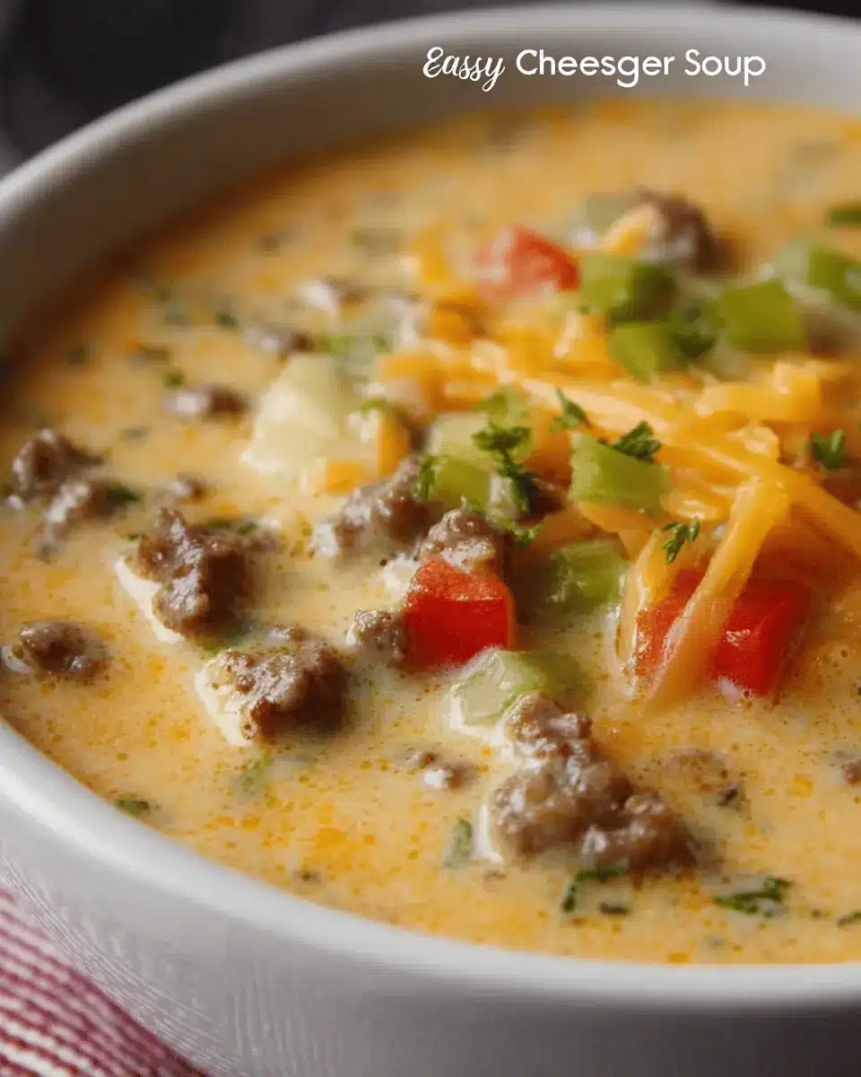 Switching things up with a vegetarian take on easy cheeseburger soup can be simple and delicious! Substitute the ground beef with lentils or your favorite veggie crumbles. You can also incorporate diced mushrooms and add a splash of soy sauce or tamari for a savory depth. Instead of chicken broth, try vegetable broth to keep it fully plant-based. Pair it with a piece of crusty bread for a wholesome, satisfying meal. Check out this vegetarian soup guide for more inspiration!