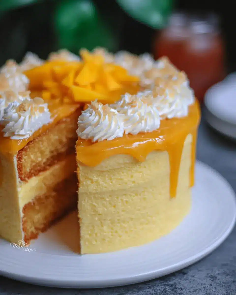 One slice of this easy mango cake contains approximately 250–300 calories. This makes it a delightful indulgence without being overly caloric—perfect for a special treat!