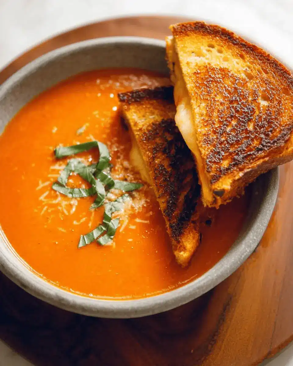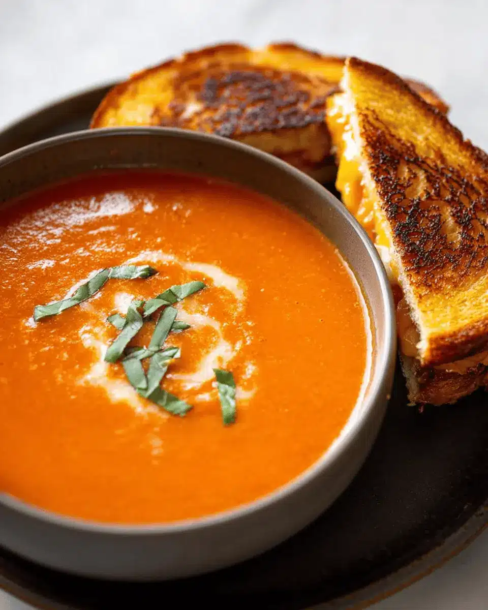 In a nutshell, this easy tomato soup paired with a cheesy grilled cheese sandwich is a nostalgic delight that transcends age. A bowl of this soup brings warmth and comfort, making it perfect for any day. Don't hesitate to add your personal touch! Enjoy this classic with loved ones.
