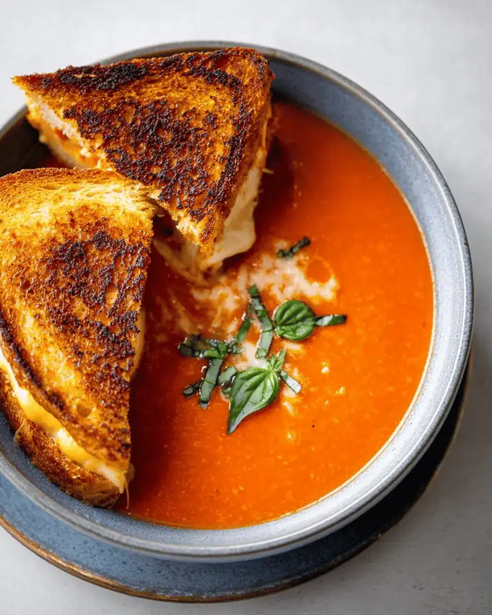 Now for the best part—serving! Ladle the creamy tomato soup into bowls, adding a swirl of cream and a sprinkle of fresh basil leaves for garnish. Serve alongside your warm, cheesy sandwiches for a classic combo that feels like a hug in your dining room. This easy tomato soup not only fills your belly but also tugs at your heartstrings. Enjoy this delightful pairing, and don’t forget to share your experience with friends!