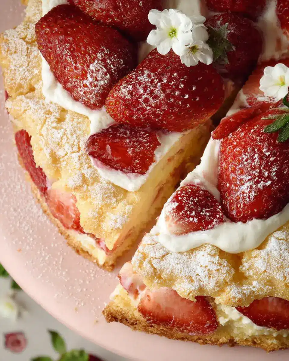 Imagine a dessert that captures the essence of summer in each bite—this is precisely what the French Strawberry Cake offers. With its soft, custardy center and a delightful crackled top, this cake is more than just visually appealing; it brings an irresistible burst of freshness thanks to the juicy strawberries nestled within.