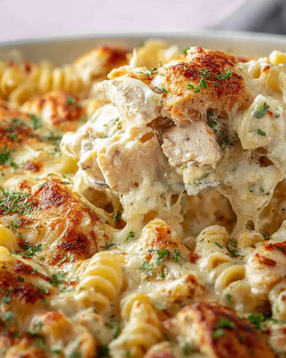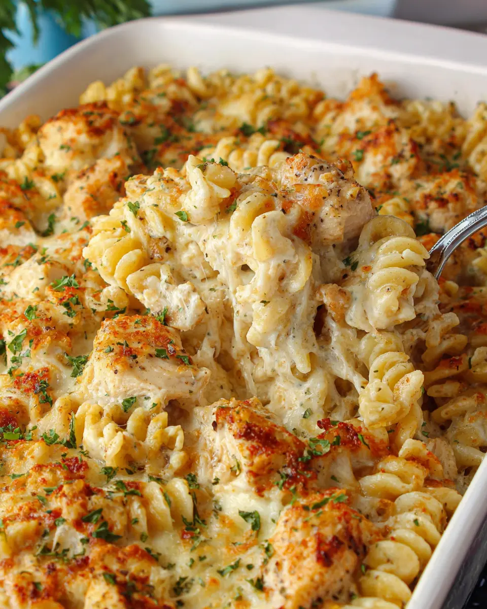 The beauty of the Garlic Parmesan Chicken Pasta Bake lies in its versatility. Want to use leftover chicken? Go for it! In need of a healthier alternative? Swap in whole-grain pasta or add chopped veggies. This recipe is not just flexible; it’s also great for meal prepping. Prepare it in advance, freeze individual portions, or enjoy it throughout the week.