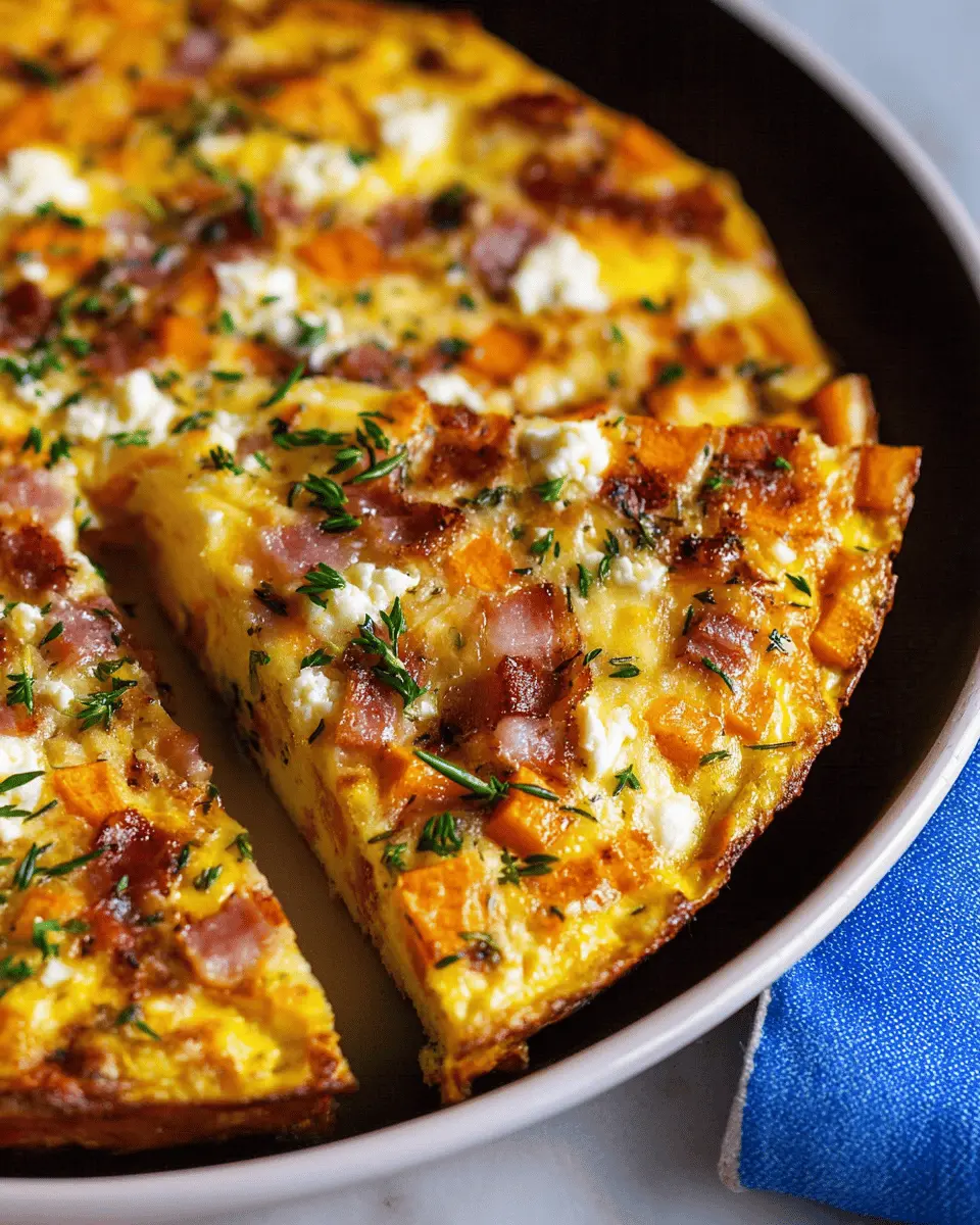 The ham sweet potato frittata is wonderfully versatile! For a delightful brunch spread, consider pairing it with a fresh garden salad drizzled with balsamic vinaigrette or a simple fruit platter featuring seasonal berries and melons. For beverages, a refreshing glass of fresh-squeezed orange juice or herbal tea can complement the savory flavors beautifully. Want to elevate the experience? Try serving with avocado toast sprinkled with chili flakes for an added kick!