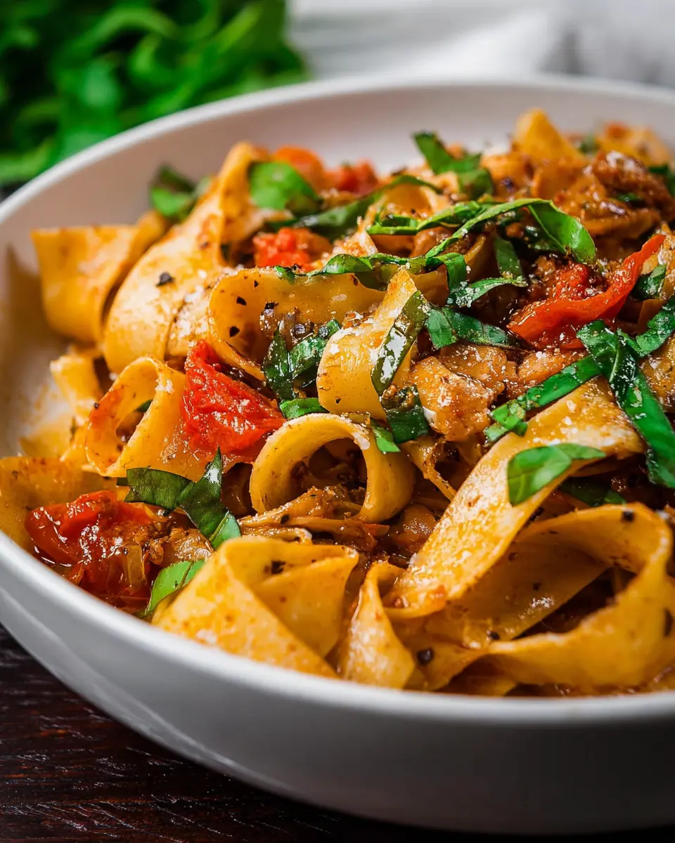 Absolutely! While the recipe calls for pappardelle or fettuccine, feel free to experiment with other pasta shapes like rigatoni or penne. The dish's rich sauce clings wonderfully to any pasta, making it delicious regardless of the choice. Just remember to adjust the cooking time as needed!
