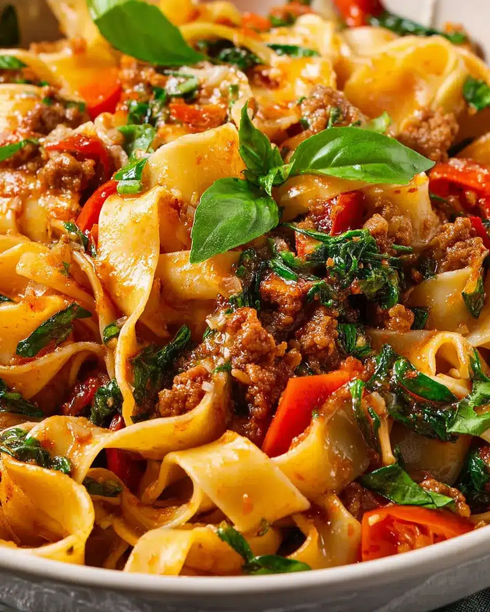 In summary, Italian Drunken Noodles are a delightful fusion that brings comfort and flavor together in one hearty dish. With vibrant veggies, savory sausage, and a rich tomato sauce, this recipe is bound to impress at your next gathering. Explore more delectable variations and enjoy!