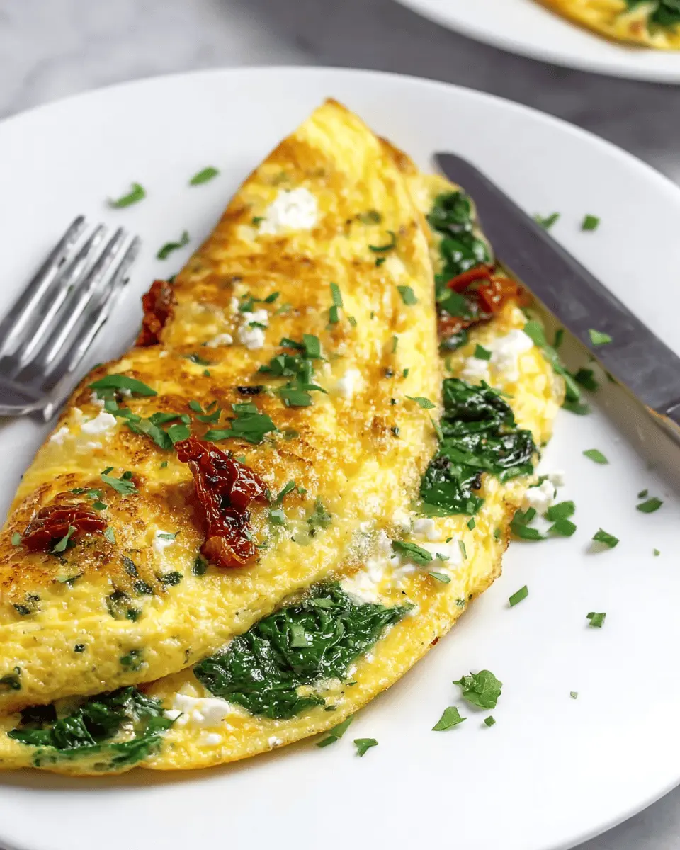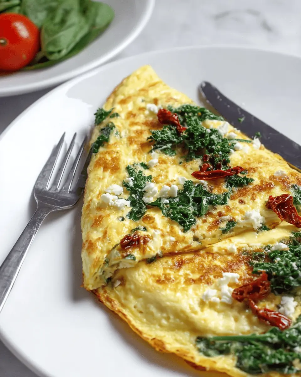 Kale Omelette with Sun-Dried Tomatoes & Feta Cheese
