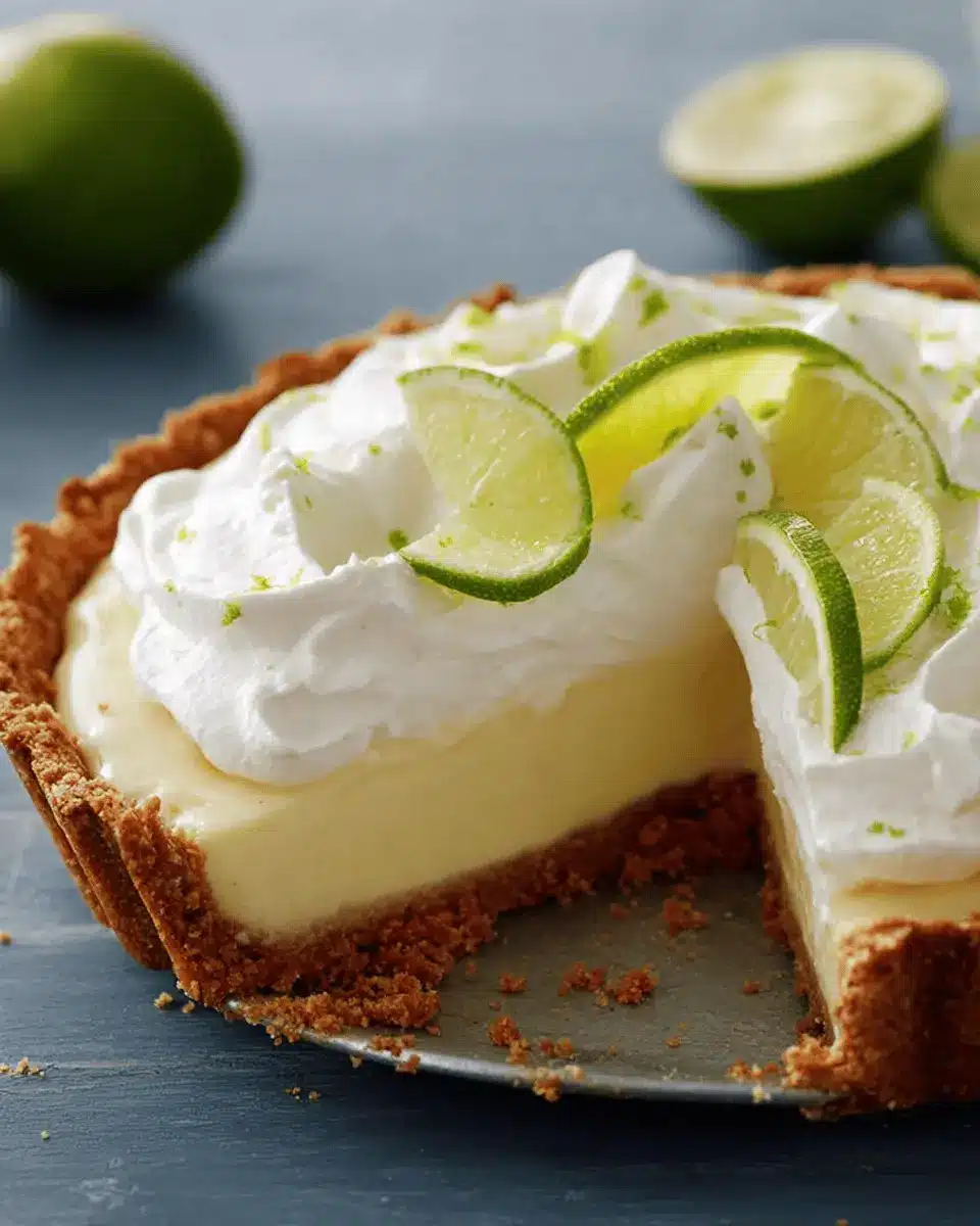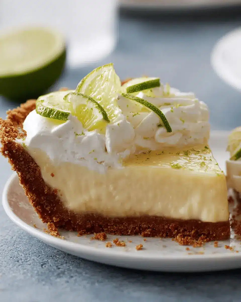 Spread this luscious whipped cream over the chilled pie, and don’t forget to garnish it with grated lime zest and thin lime slices for that extra pop of color and flavor. Store it in the fridge until you’re ready to slice into it.