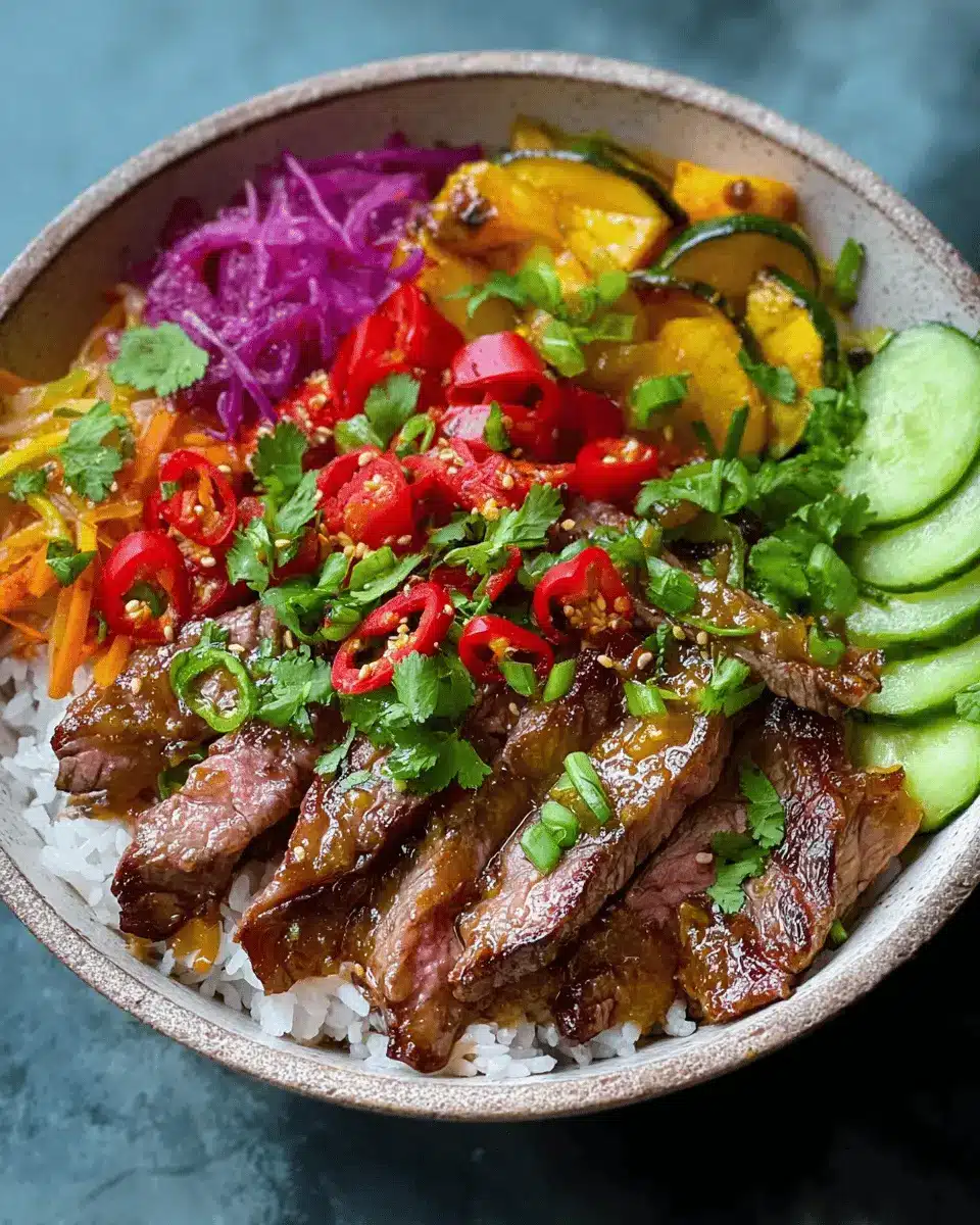 To add an extra kick to your Korean BBQ Steak Bowl, consider incorporating more gochujang paste or sriracha into your beef sauce. You could also mix in sliced fresh chilies or sprinkle some red pepper flakes on top of your assembly. Just remember, spice is all about personal preference, so adjust it to your liking! If you want more tips on adjusting heat levels, check out this spice guide for further inspiration.