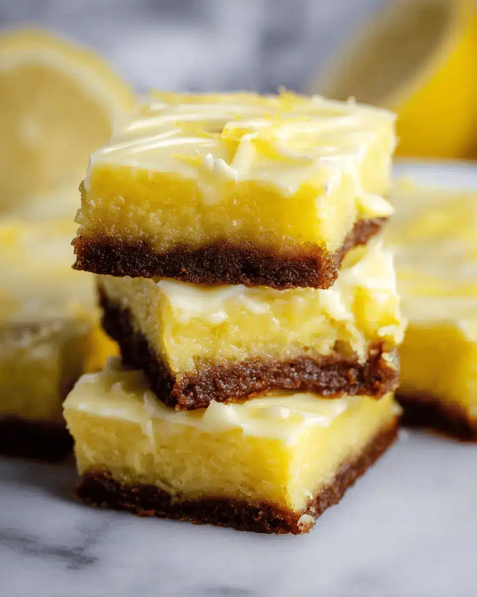 Elevate your dessert presentation by serving lemon brownies in fun, creative ways. Slice them into bite-sized squares and arrange on a platter with fresh fruit like strawberries or blueberries for a pop of color. For an afternoon gathering, consider serving them with a dollop of whipped cream or a scoop of vanilla ice cream. If you're feeling crafty, drizzle some extra glaze on top for added flair.