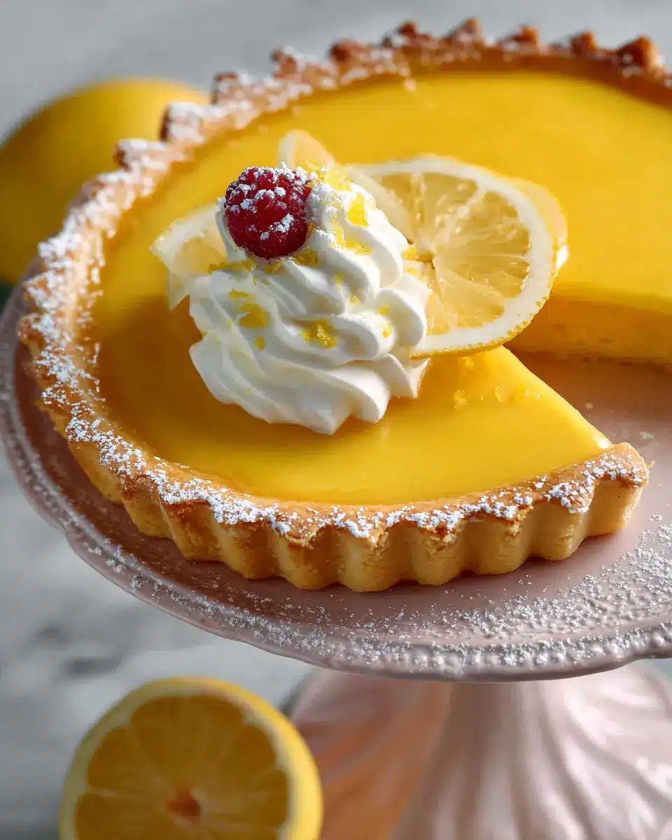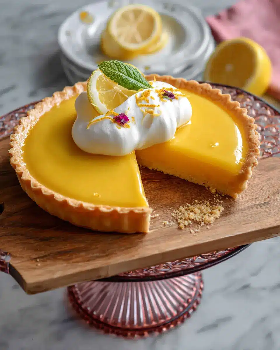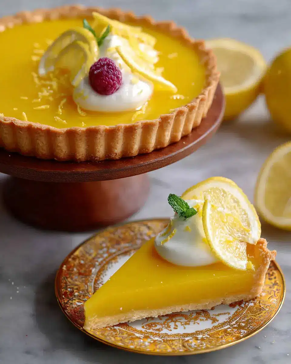 A slice of lemon tart shines brightly alongside fresh fruit. Consider serving it with a medley of berries—strawberries, blueberries, and raspberries—each adding a splash of color and a hint of natural sweetness that complements the tangy filling. Alternatively, a citrus assortment, like mandarin segments or slices of juicy kiwi, can enhance the zesty notes of the lemon tart deliciously.
