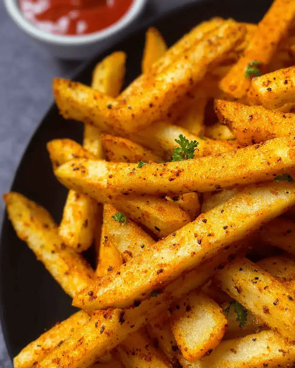 Why are these fries the ultimate choice for a midday pick-me-up or a late-night treat? First, the preparation is incredibly simple and fast, taking only about 20 minutes to whip up at home. You can easily customize the spice levels to suit your mood or craving, adding just the right amount of heat with red chili powder or a sprinkle of chat masala. Also, with options for frying, baking, or using an air fryer, these masala french fries fit seamlessly into any cooking routine.