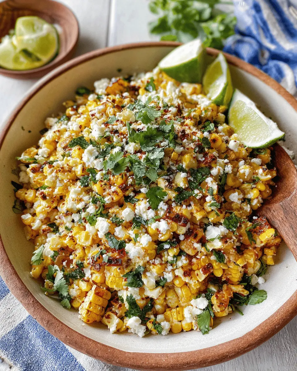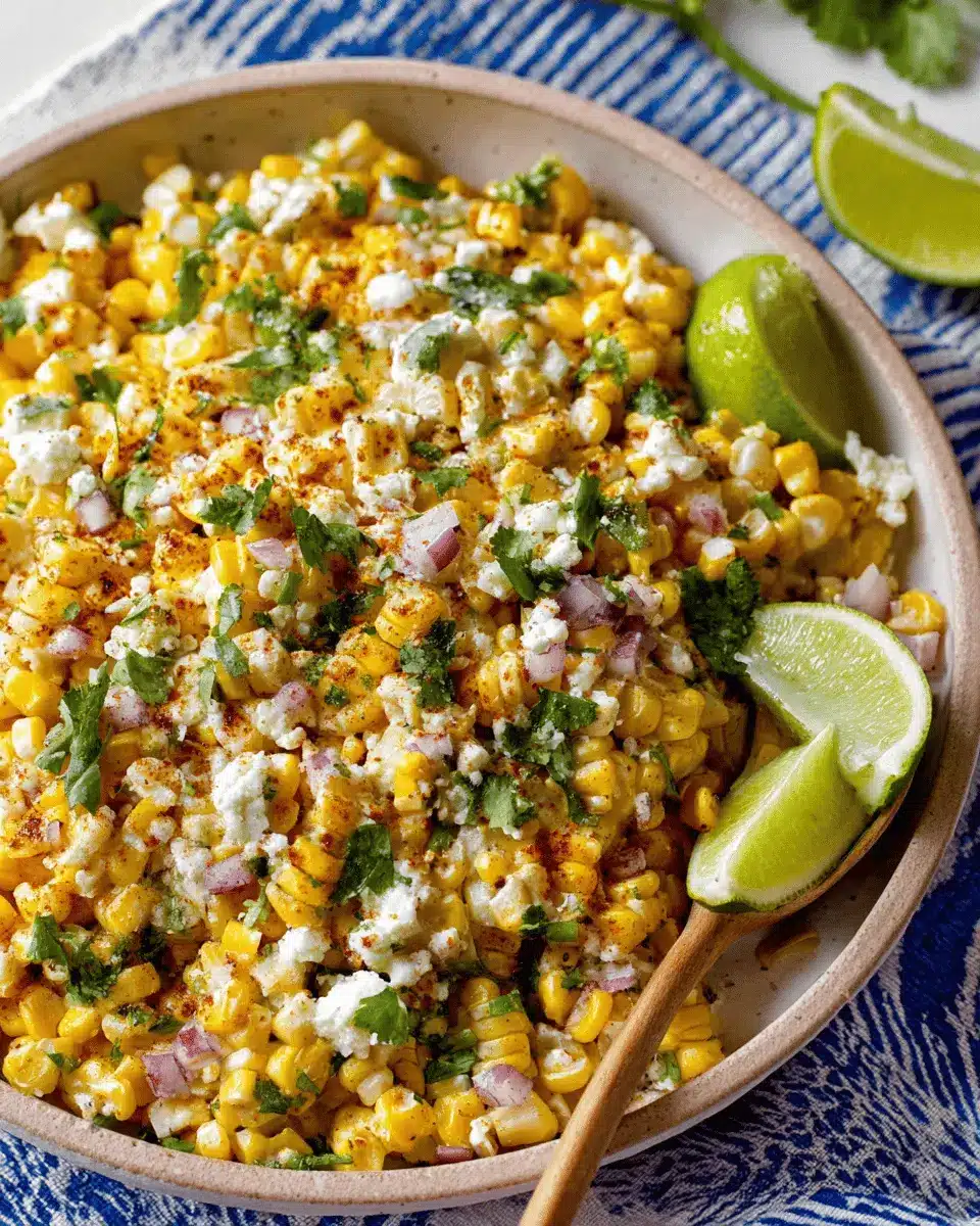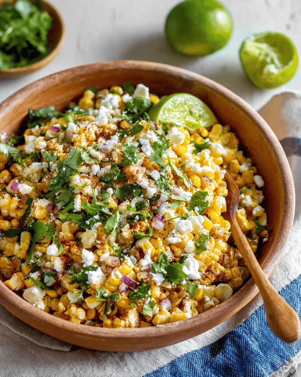 If you’re craving a kick, try a spicy Mexican street corn salad! Just increase the amount of diced jalapeños to suit your heat preference. You could also add a dash of cayenne pepper or swap in diced serrano peppers for a bolder flavor. For an extra punch, drizzle some hot sauce or sprinkle crushed red pepper flakes over the finished dish. The heat will beautifully contrast with the sweetness of the corn, making every bite a savory experience.