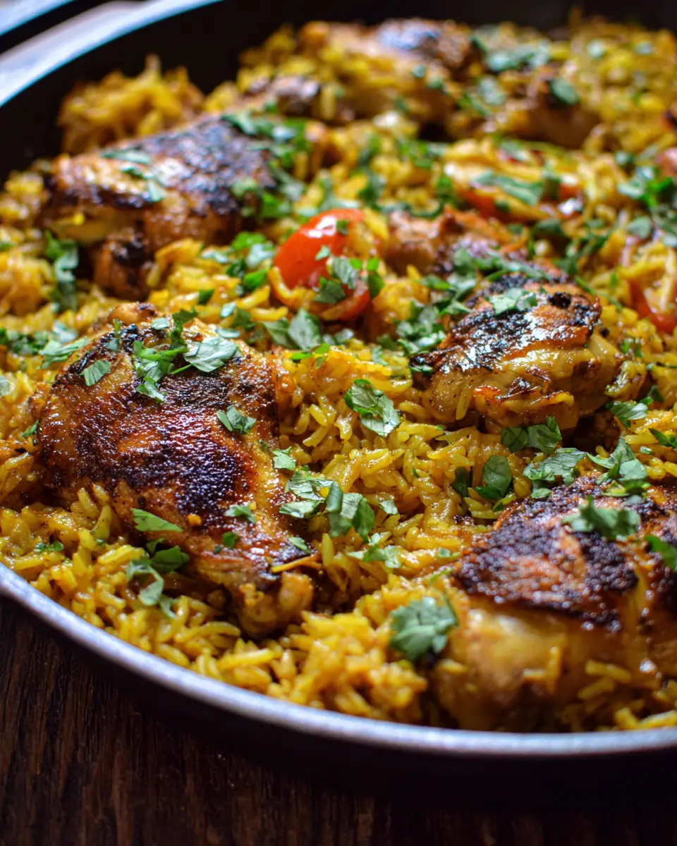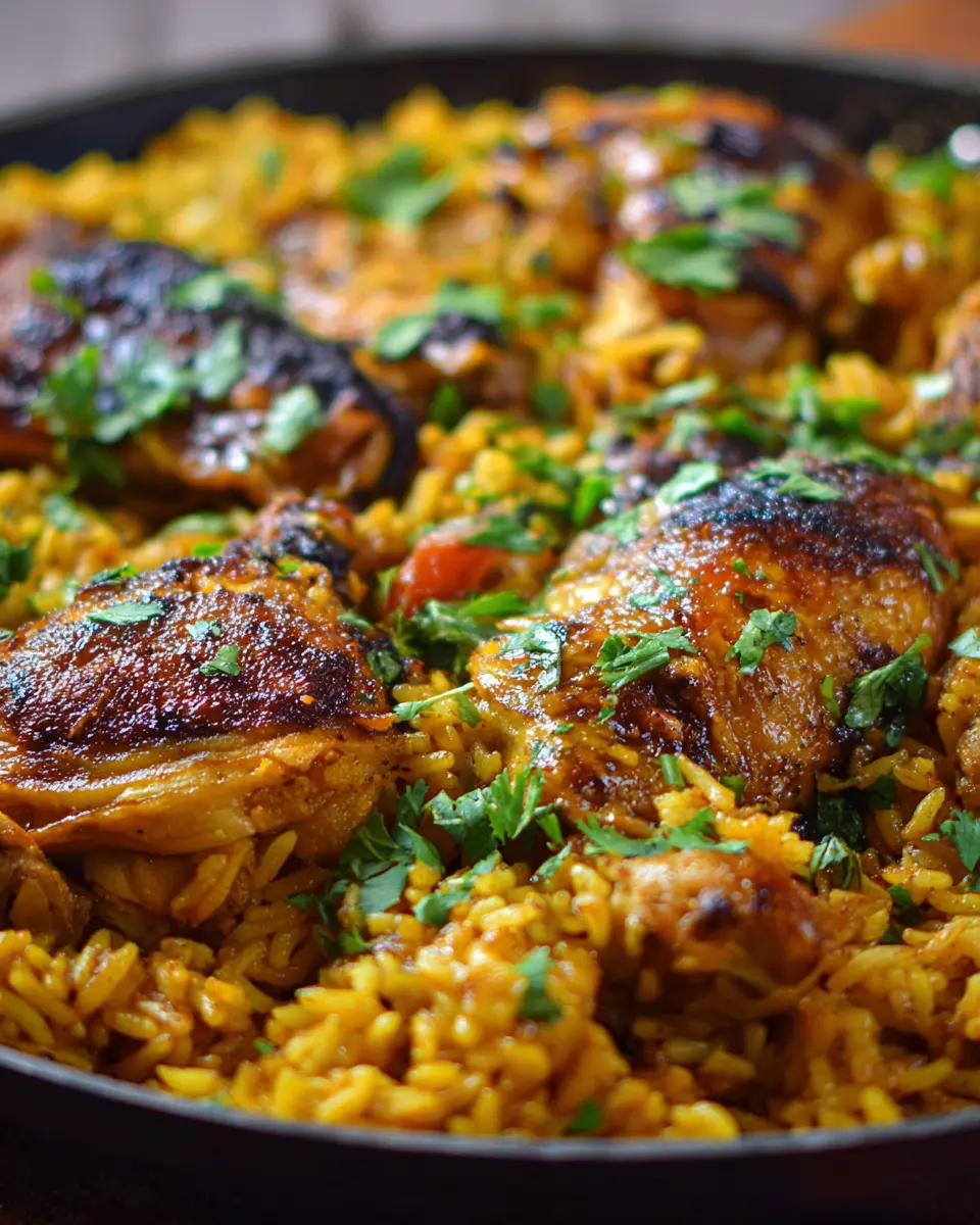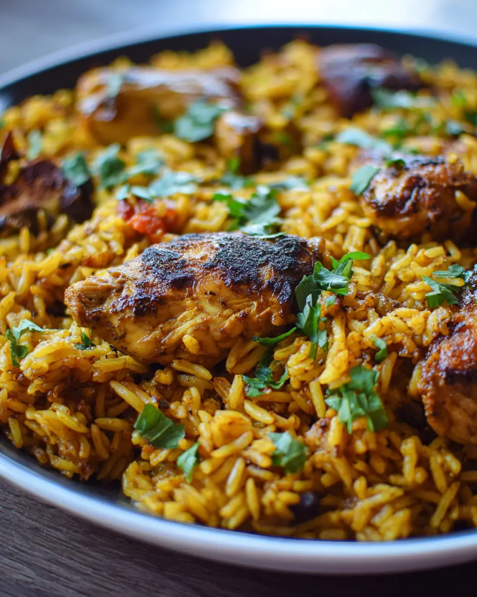 First things first—marinating the chicken is crucial for infusing flavor. In a large bowl, combine the juice of half a lemon, turmeric, cumin, dried coriander, oregano, crushed garlic, salt, and pepper. This aromatic mixture will really elevate your chicken! Add your chicken thighs to the bowl, making sure they’re well-coated. Cover and let them sit in the fridge for at least an hour, or even overnight if you have the time. This extra step allows those spices to penetrate the meat, ensuring a longer-lasting flavor throughout your Moroccan Chicken & Rice.