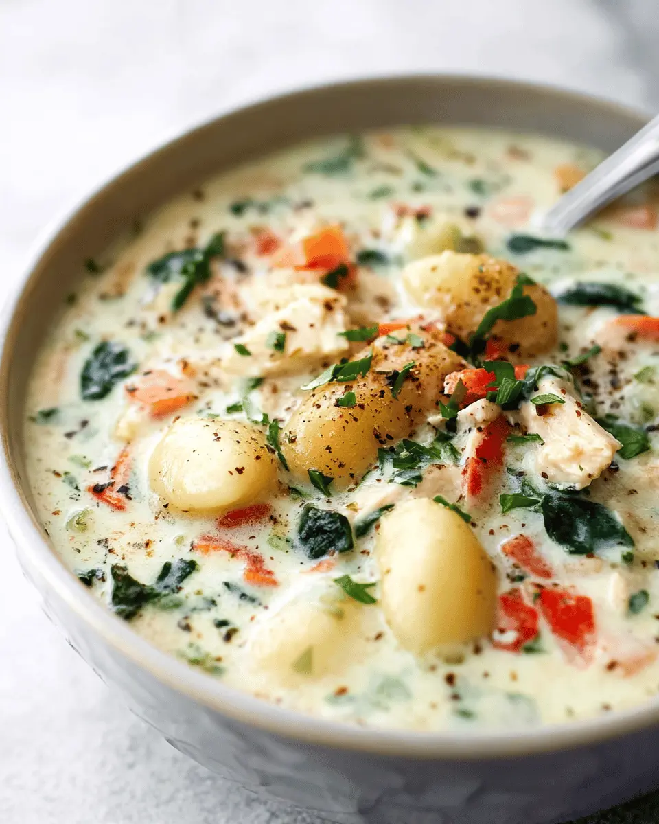 In summary, this Olive Garden Chicken Gnocchi Soup is more than just a dish—it's a cozy hug in a bowl. With its creamy richness and hearty ingredients, it’s perfect for bustling weeknights or relaxed weekends. Try it today, and you’ll understand why it's a beloved classic. Enjoy cooking!
