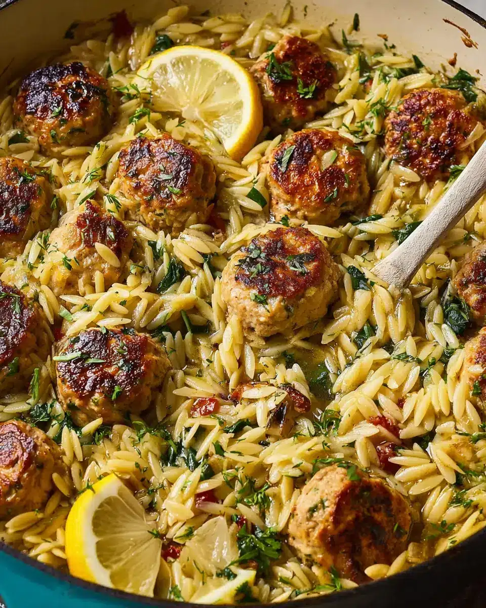 One-Pan Greek Chicken Meatballs and Lemon Orzo