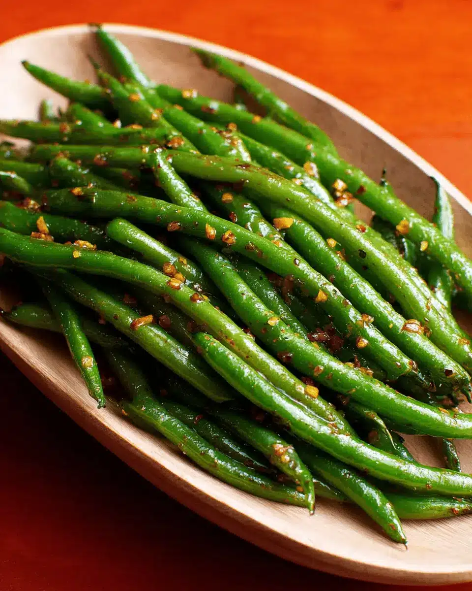A trio of minced garlic cloves adds a savory touch while honey introduces a hint of sweetness, balancing the dish beautifully. This combination creates a rich, caramelized glaze that clings perfectly to the green beans.