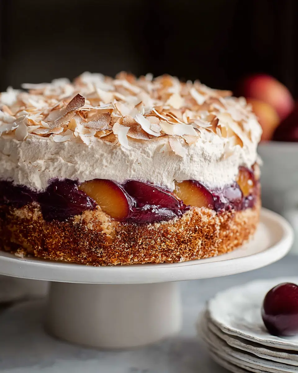 With its juicy plums and crispy meringue, it’s truly a rewarding experience for any home baker! If you're interested in making your own, why not check out our recipe for Ottolenghi's Louise Cake With Plum And Coconut? It's a delightful treat that’s sure to impress.