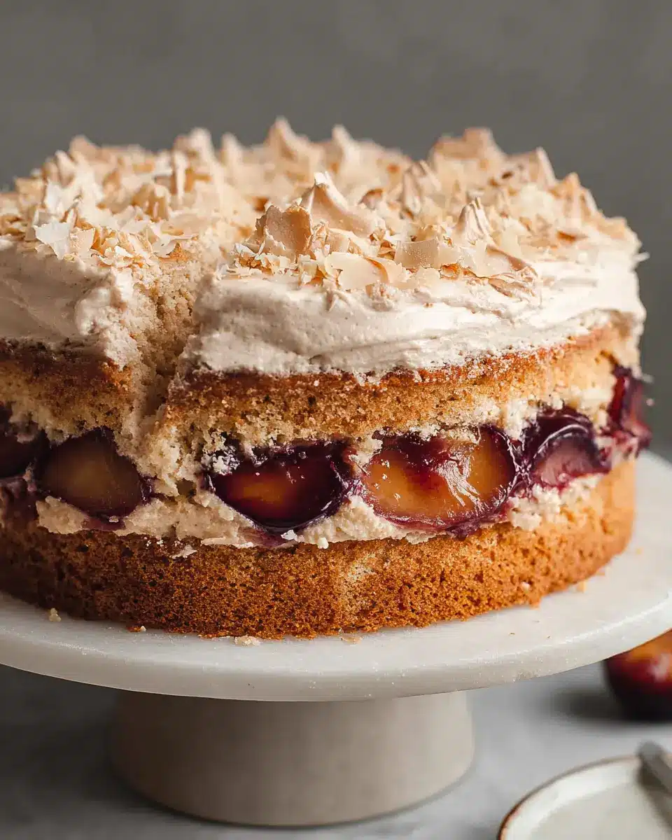 Presentation can elevate any dessert, and Ottolenghi's Louise Cake is no exception. Serve it on a decorative cake stand to highlight its impressive layers. Consider garnishing with extra toasted coconut flakes or fresh mint leaves for a pop of color. Slice the cake into generous wedges, ensuring each piece showcases those lovely plum segments and the airy meringue top. For added flair, dust the top lightly with powdered sugar just before serving, creating an elegant finish that invites your guests to dig in!