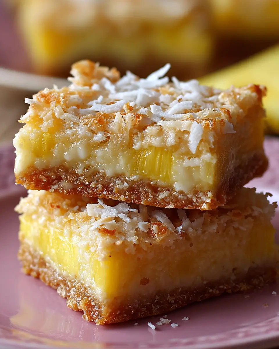 When hosting friends, the way you present your Pineapple Bliss Bars can elevate the whole event. Arrange the bars on a decorative platter and dust them with powdered sugar for a snowy finish. Consider garnishing each bar with a slice of pineapple or a sprinkle of toasted coconut for visual appeal. If you want to share the flavor adventure, create a tropical dessert bar by complementing the bars with fresh fruit, chocolate dipping sauces, and tropical-themed decor. It’s simple, inviting, and sure to be a hit!