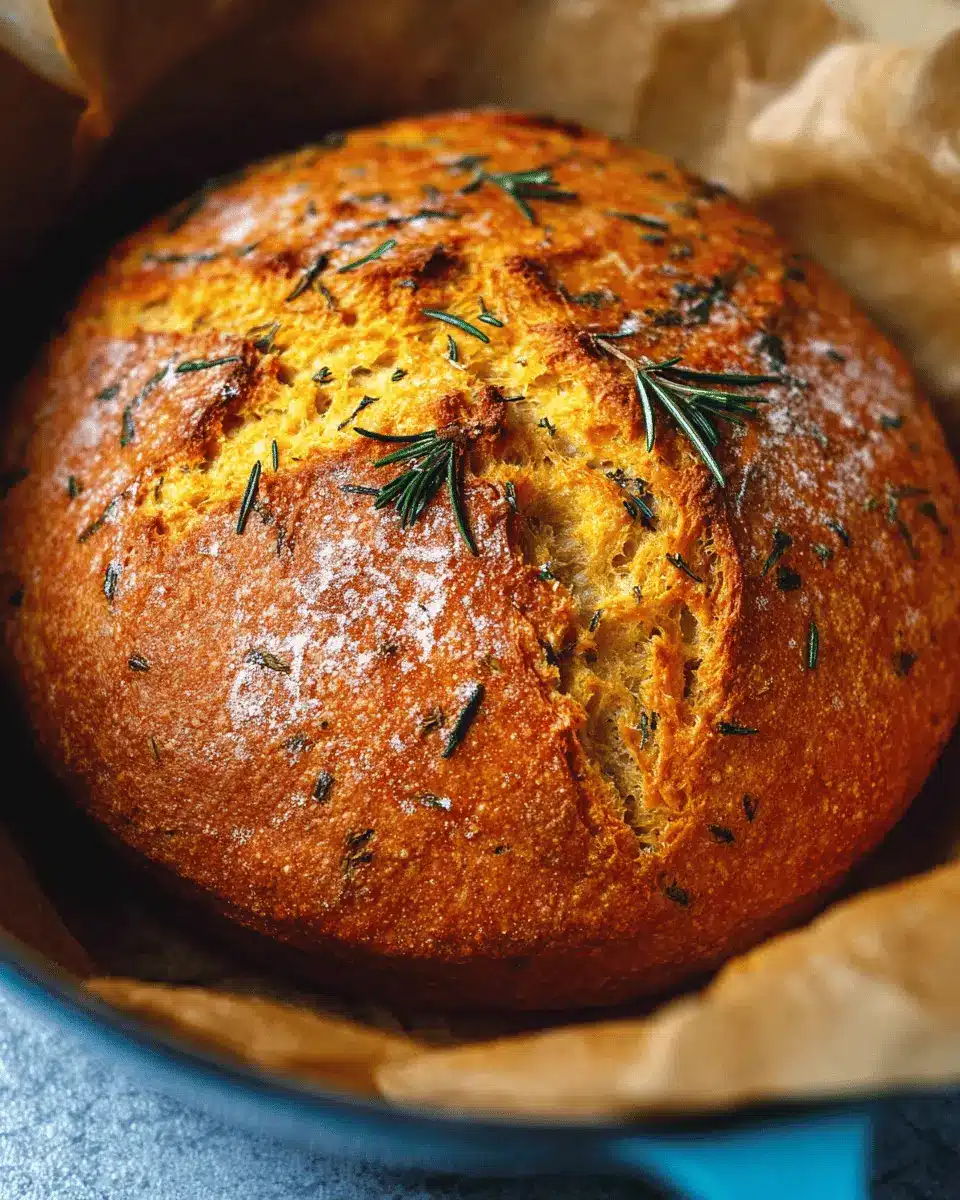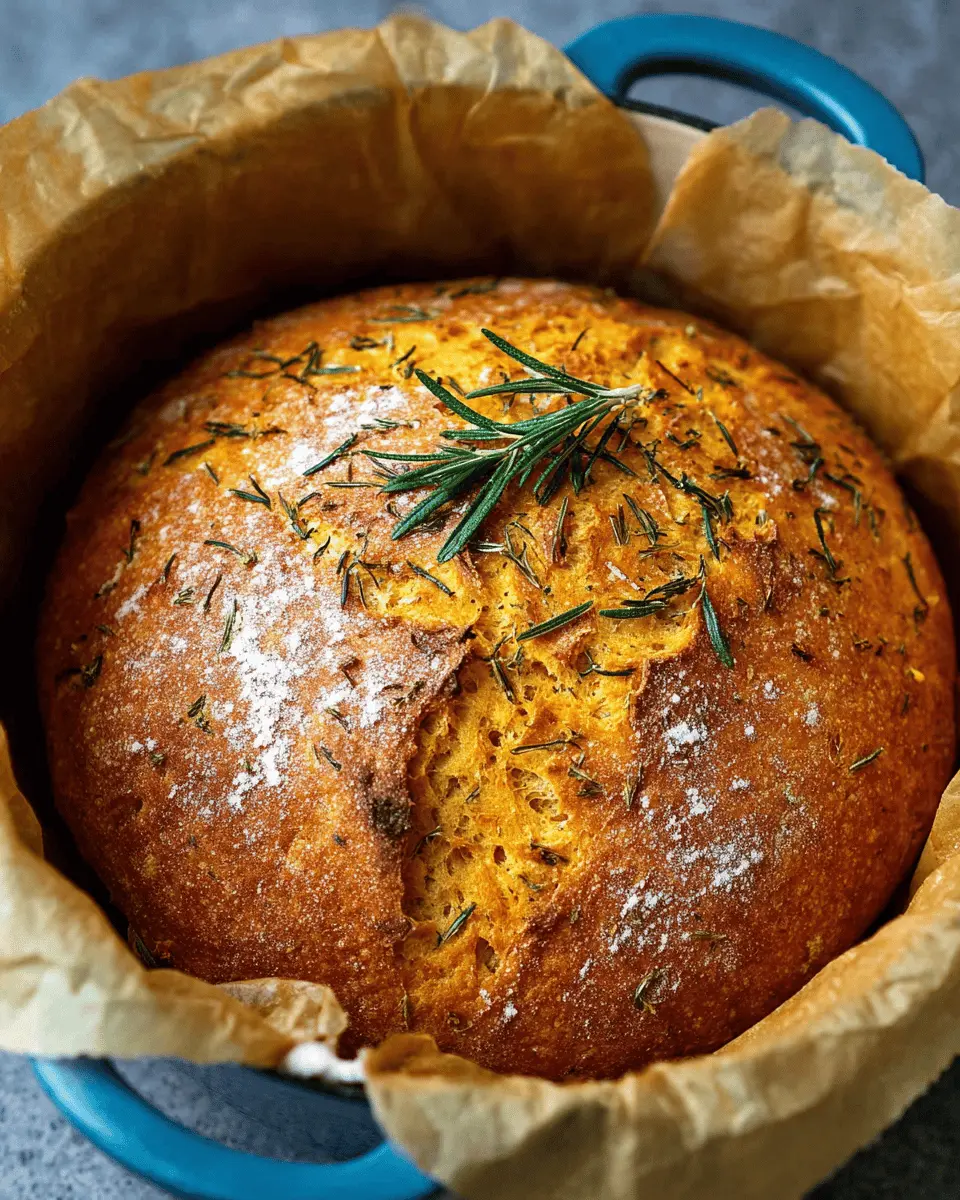 Pumpkin No Knead Bread with Rosemary and Olive Oil (Dutch Oven)