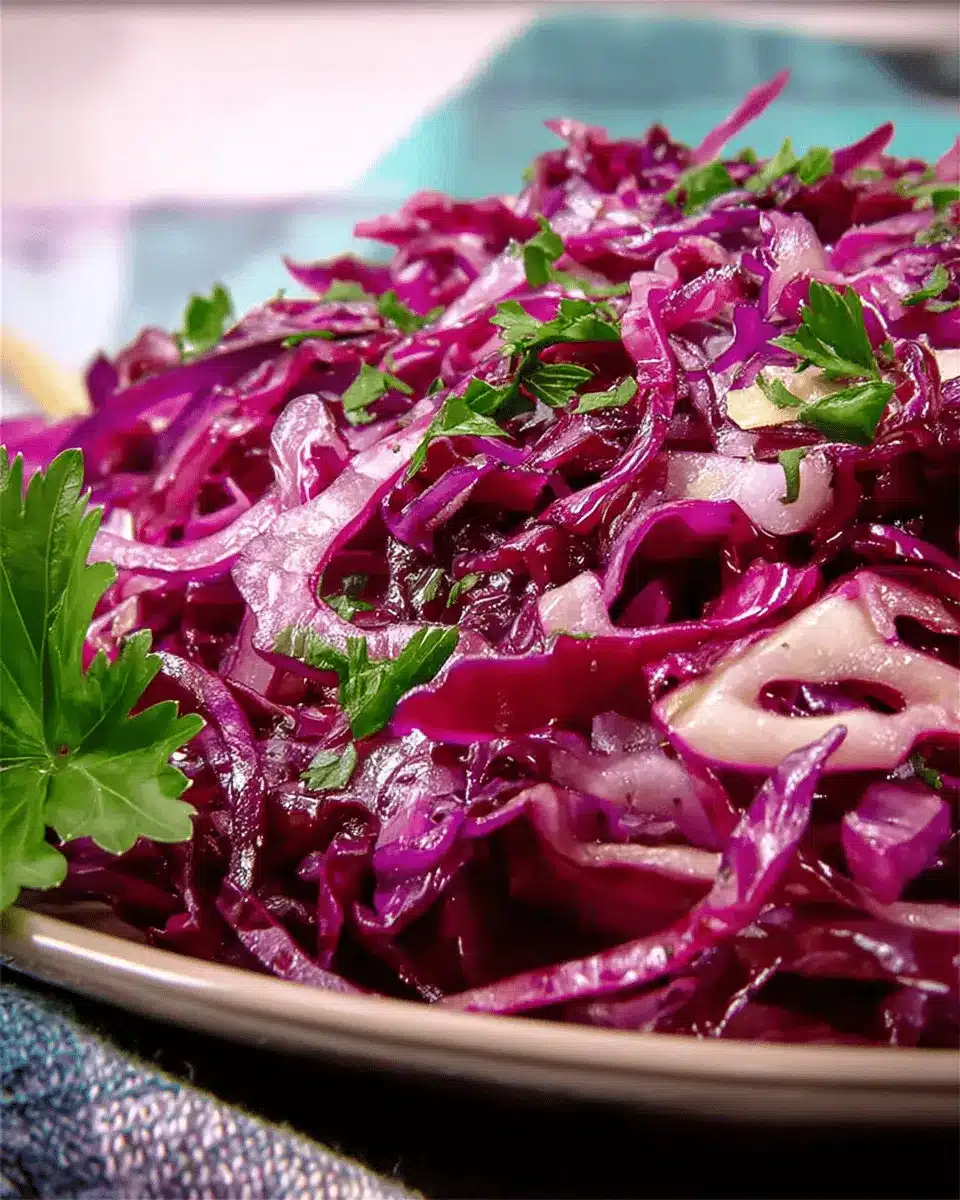 Whether you’re planning a picnic, hosting a potluck, or just craving a crisp salad, Red Cabbage Salad can easily be prepared in advance, freeing you up to enjoy more time with loved ones. Check out the benefits of red cabbage here, and let’s get cooking!