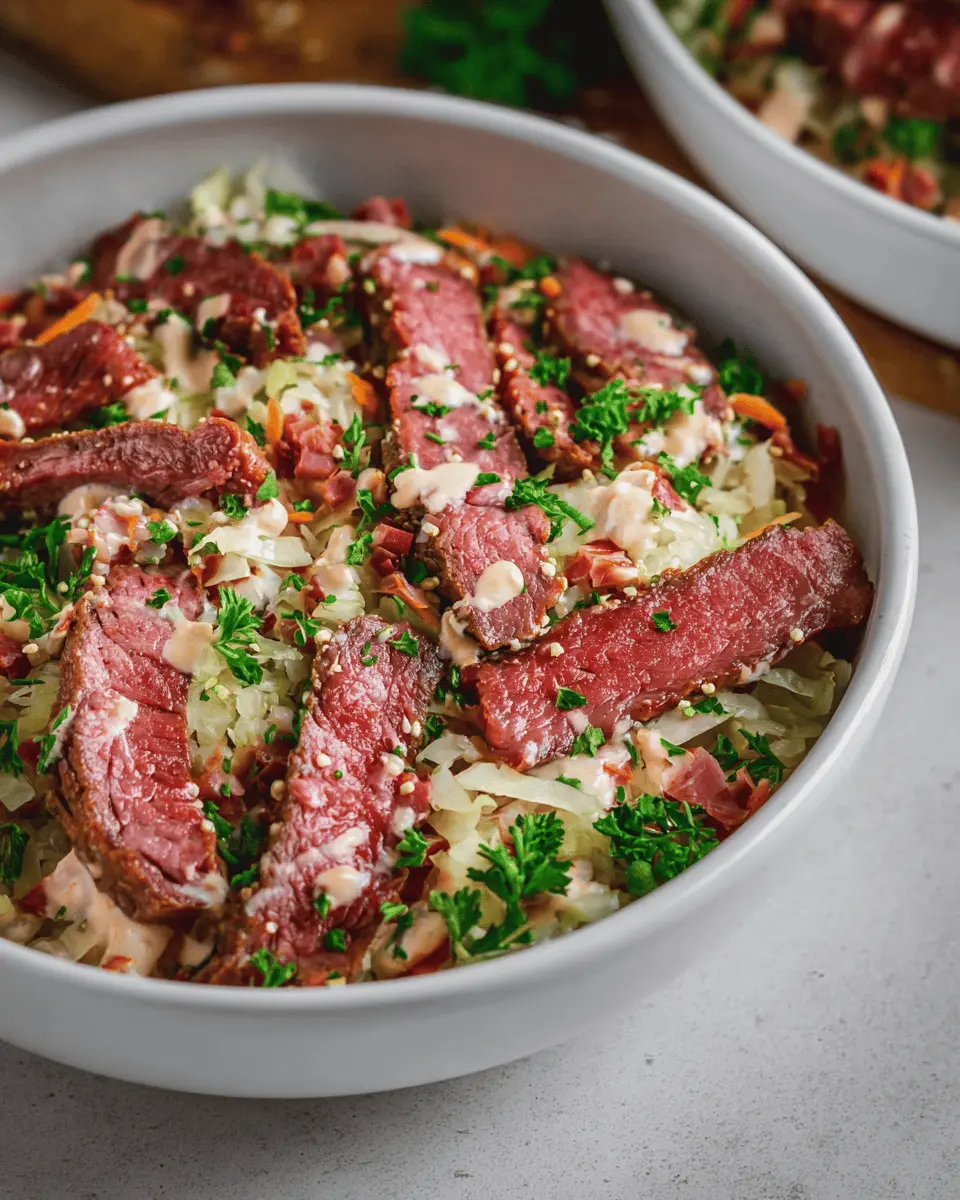 Imagine savoring tender corned beef, savory cabbage, and zesty dressing all in one convenient bowl. This meal is quick to prepare—ready in just 20 minutes—making it ideal for busy weeknights.