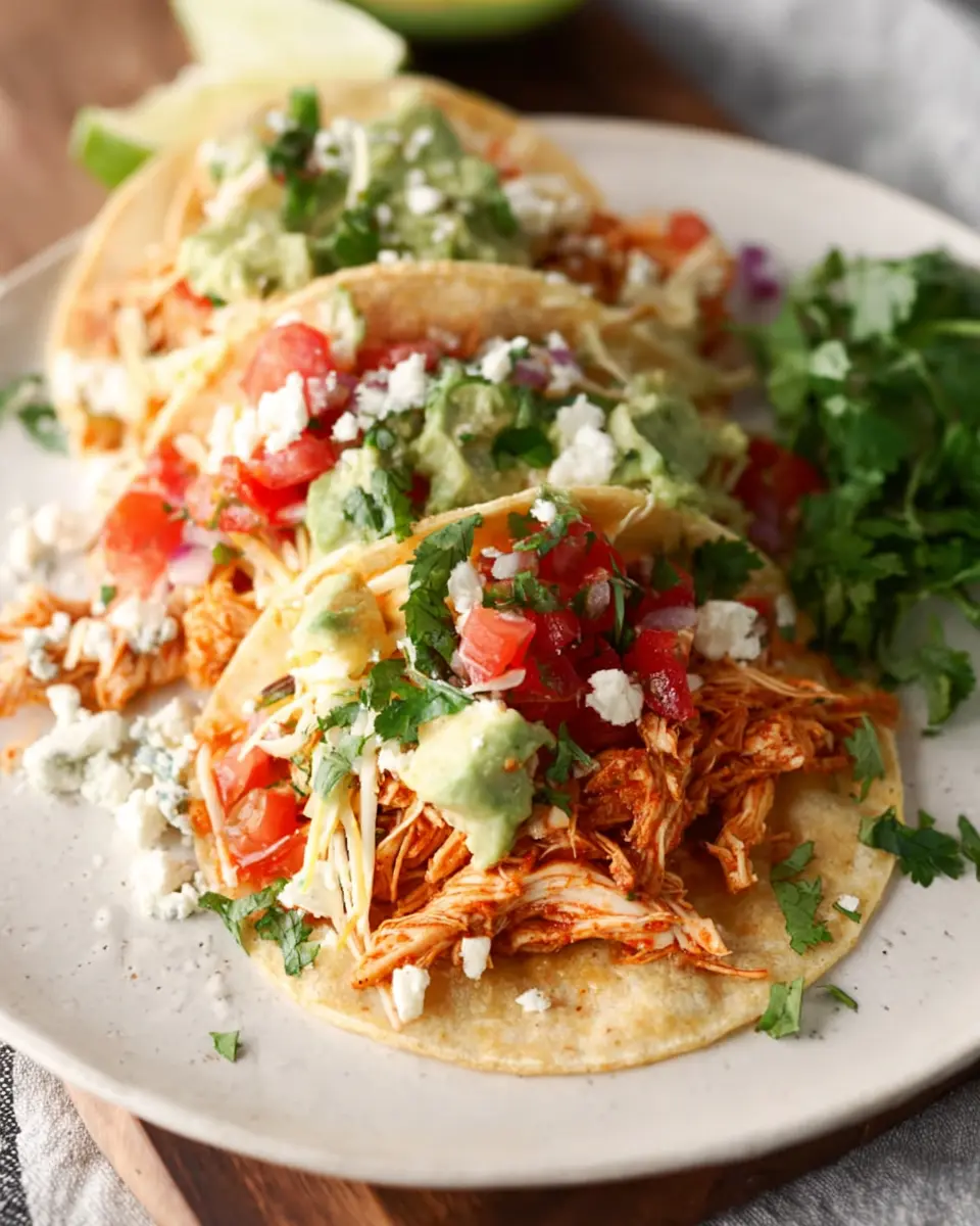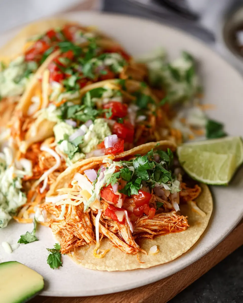 And there you have it—delicious shredded chicken tacos ready to serve! Whether it’s a casual weeknight dinner or a get-together with friends, these tacos are sure to bring everyone together. Happy cooking!
