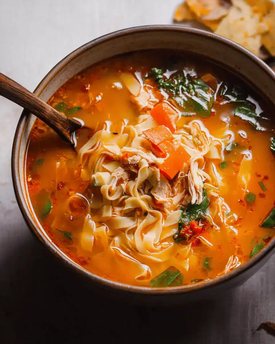 In just 35 minutes, you can have a comforting bowl of spicy chicken noodle soup ready to serve. Perfect for a cozy night in or a quick weeknight dinner!