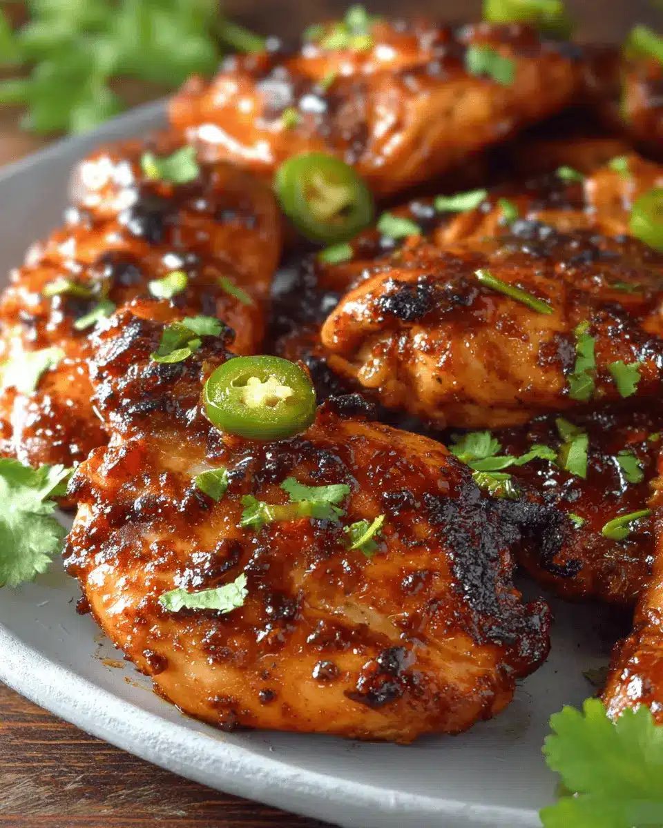 Once the sauce has beautifully enveloped your chicken, transfer it to a serving plate. You can brighten things up with fresh herbs like cilantro or even green onions as a garnish. Serve your spicy jalapeno chicken hot, and consider pairing it with jasmine rice or a simple salad to balance out the heat.